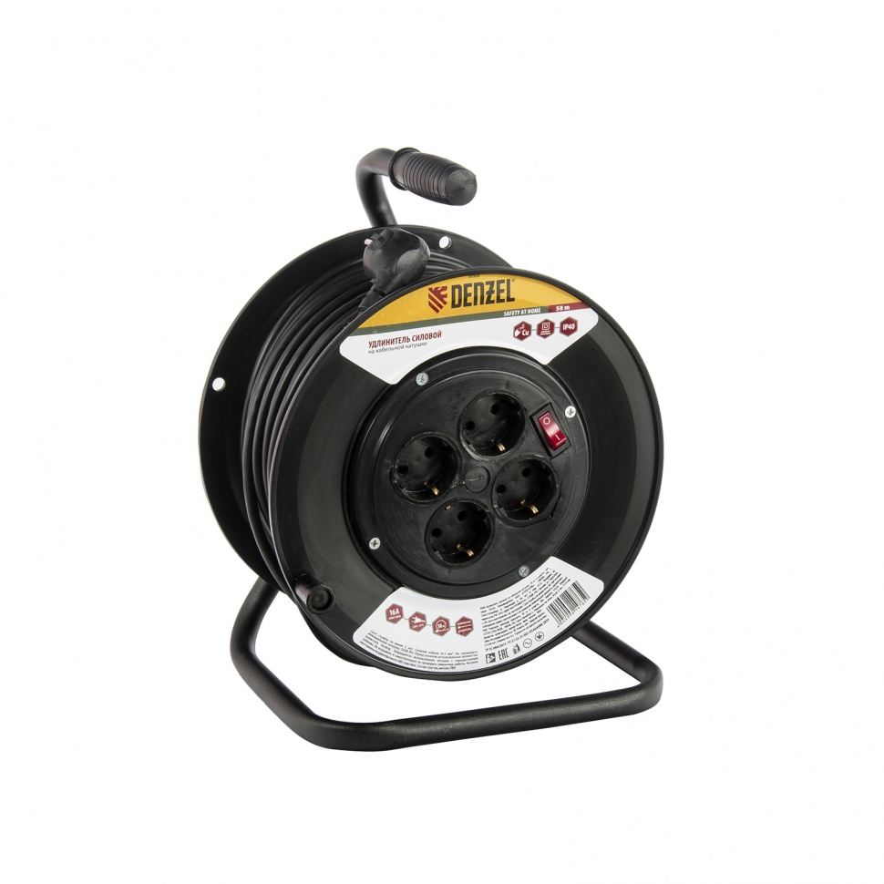 Силовой удлинитель на кабельной катушке Denzel 95906 серии УХз16, с кабелем длиной 50 м и 4 розетками, рассчитан на силу тока 16 А и используется для подключения оборудования к электросети на значительном удалении от стационарного источника энергии. Позволяет подключить 4 инструмента суммарной мощностью не более 3500 Вт. Удобная рукоятка позволяет быстро разматывать и сматывать кабель. Розетки с заземляющими контактами защищают пользователя от поражения электрическим током. Кабель на катушке будет полезен на строительной площадке, а также дома, на даче или в гараже.