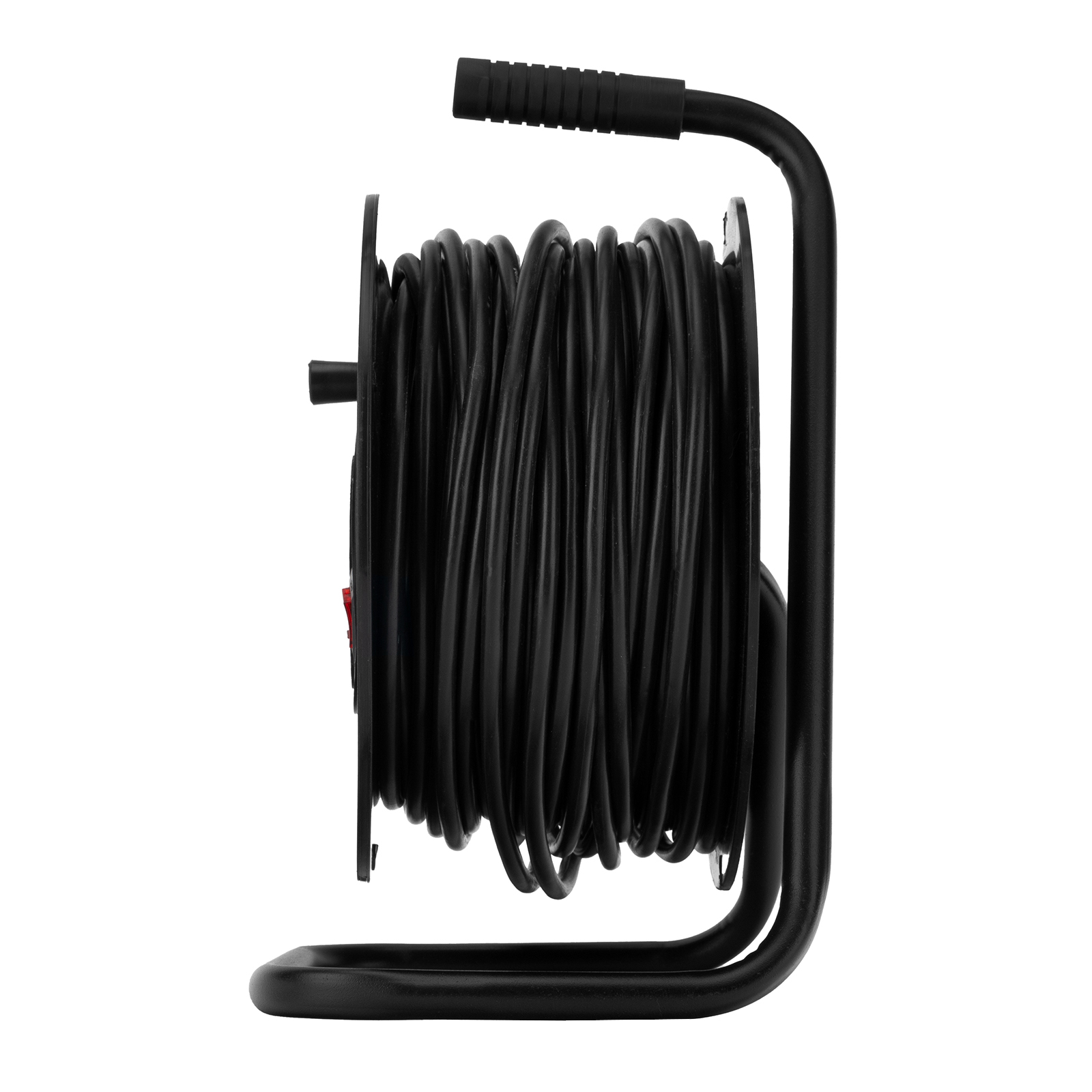 - Кабель быстро сматывается и разматывается при помощи удобной ручки.