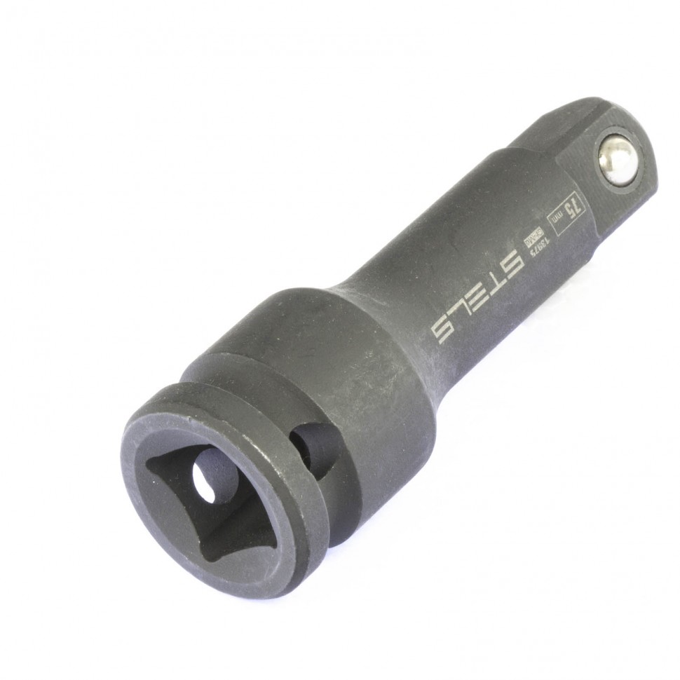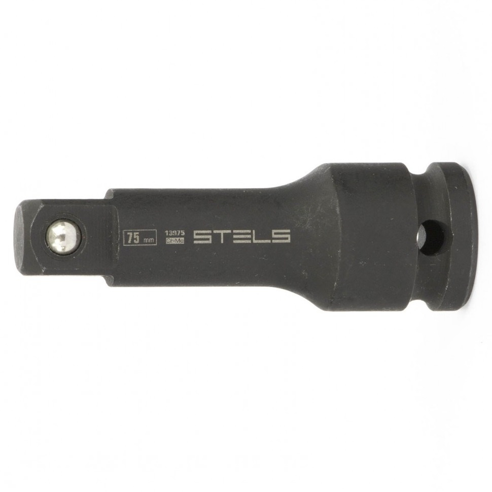 Ударный удлинитель Stels 13975 длиной 75 мм, с посадочным местом и присоединительным квадратом 1/2", используется для проведения монтажа и демонтажа резьбового крепежа в малодоступных местах. Будет полезен на предприятии автосервиса и в слесарной мастерской.