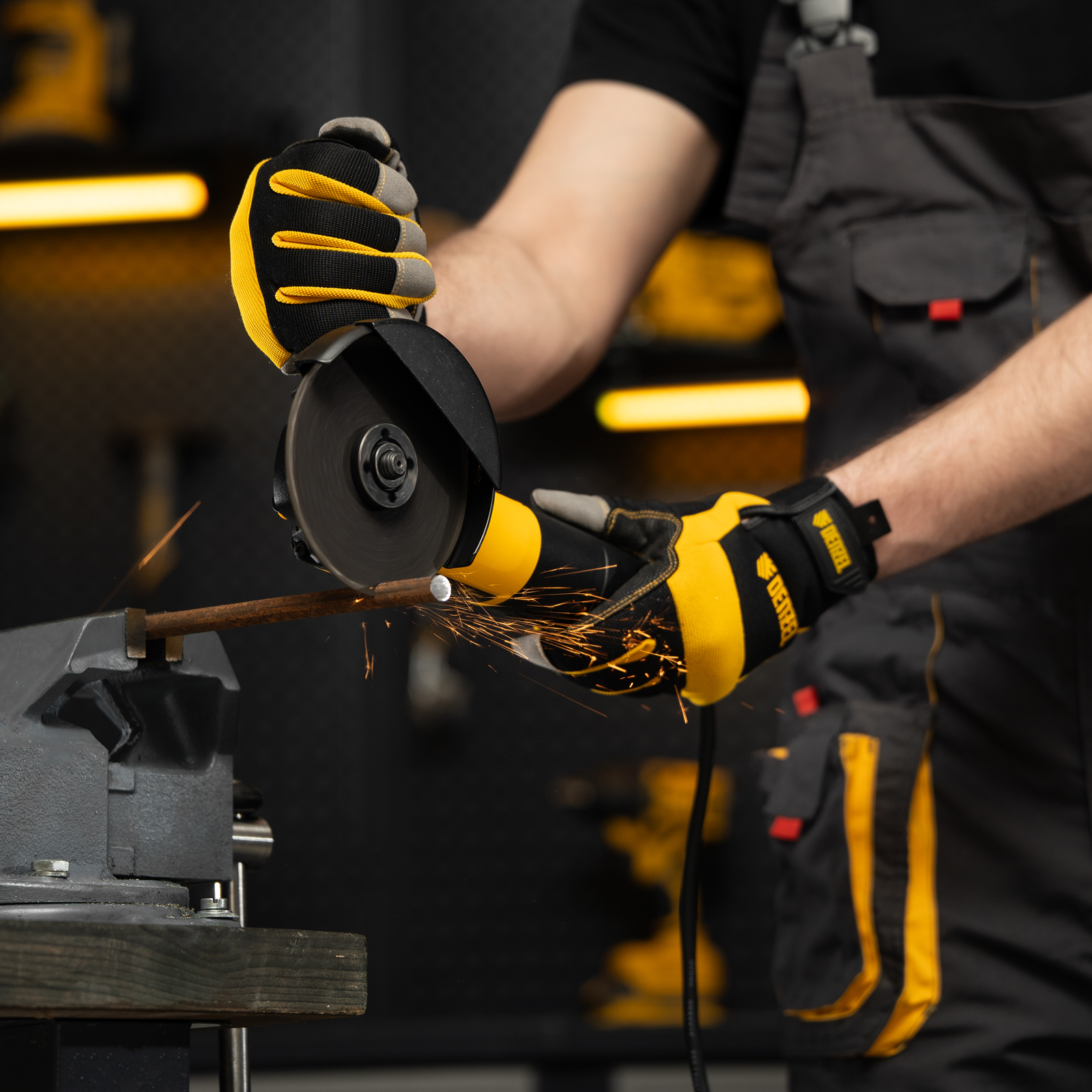 - Безопасная работа — специальный кожух с бесключевой регулировкой защищает пользователя от осколков, искр и случайного контакта с диском.