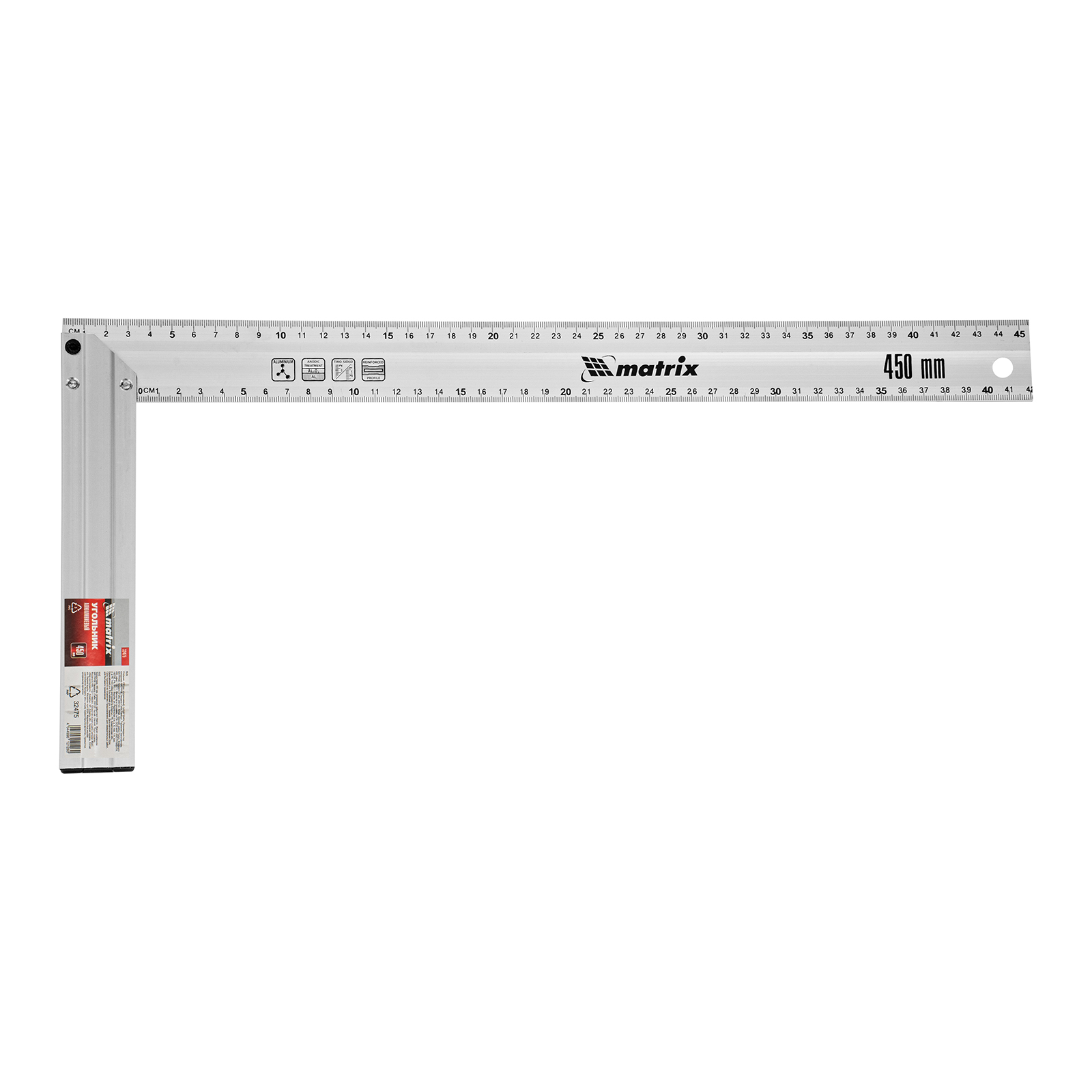 Алюминиевый литой угольник Matrix 32475 длиной 450 мм используется для проверки и разметки прямых углов во время столярных и отделочных работ. Простой, но незаменимый инструмент повышает точность работы и позволяет получить качественный результат.