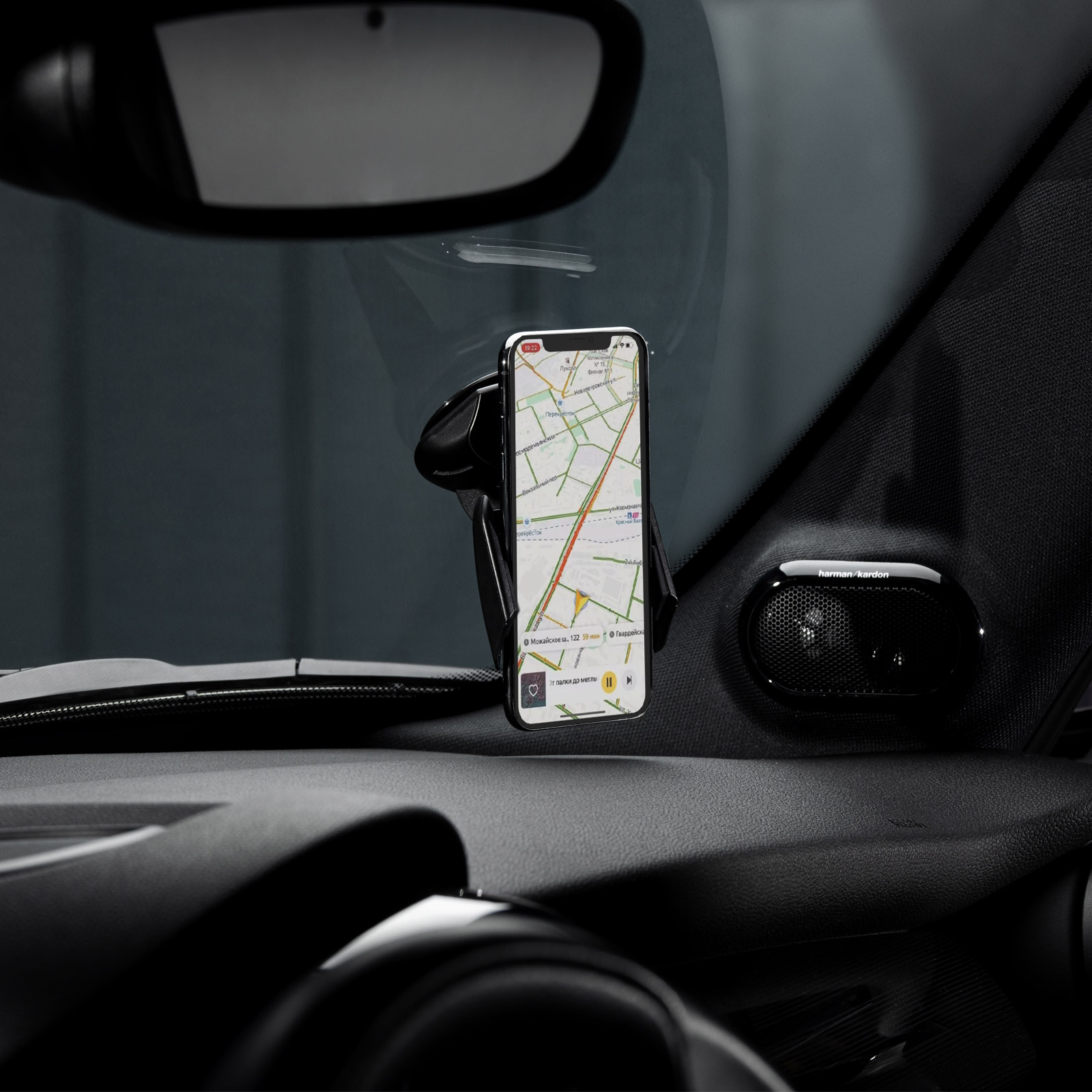 - Быстрая фиксация — телефон крепится в держателе одной рукой за несколько секунд.