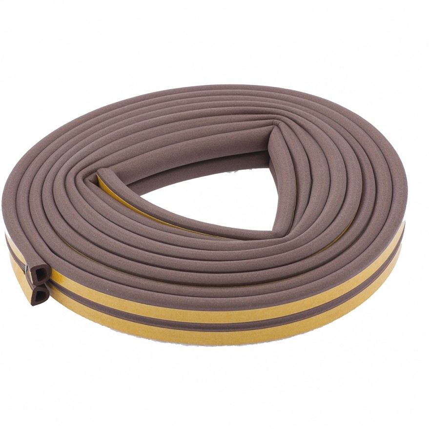 Коричневый уплотнитель Сибртех 93937 с профилем «D», длиной 12 м, предназначен для герметизации зазоров шириной 3-7 мм в оконных рамах и дверных блоках. Защищает от шума, пыли, влаги, а также сохраняет тепло в помещении.
