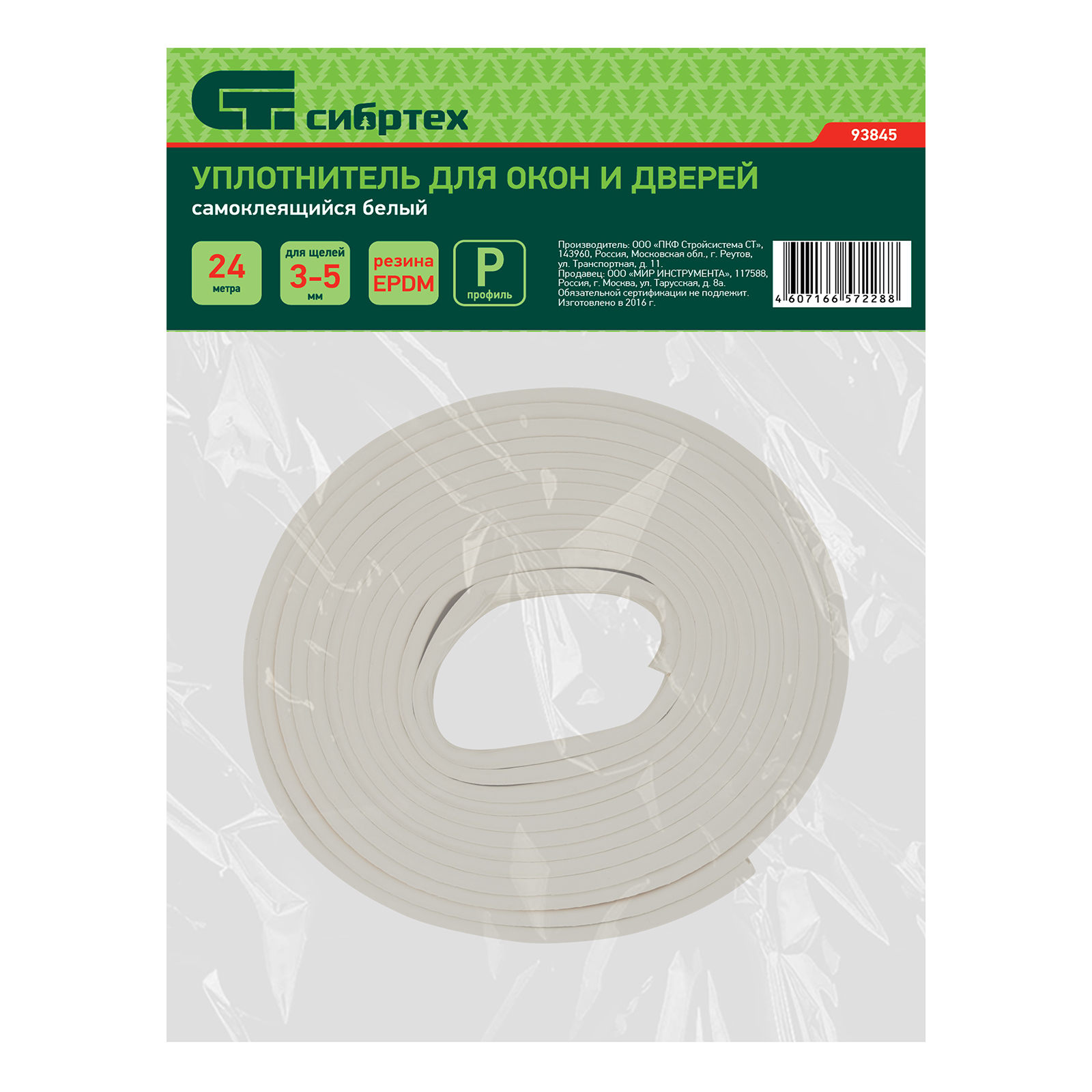 - Длина 24 м — одного уплотнителя достаточно для 1-2 стандартных окон или дверей.