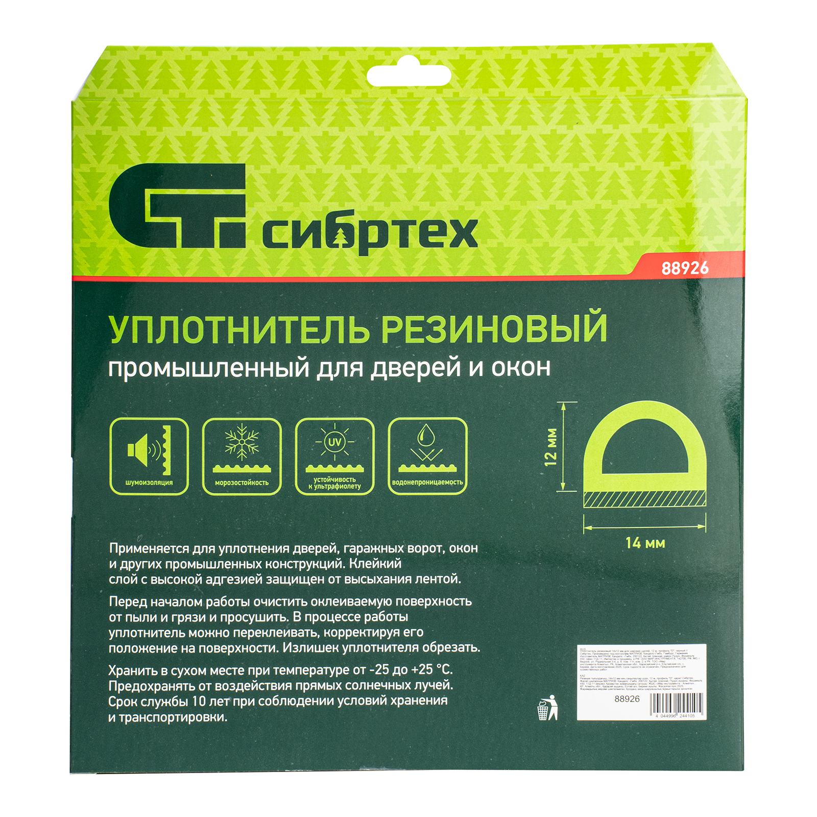 Резиновый уплотнитель Сибртех 88926 черного цвета, размером 14 x 12 мм и длиной 12 м, с профилем «D», обеспечивает надежную защиту от шума, влаги и пыли, помогает сохранить тепло в помещении. Предназначен для широких щелей 7-11 мм, оптимален для уплотнения окон, дверей, гаражных ворот и промышленных конструкций.