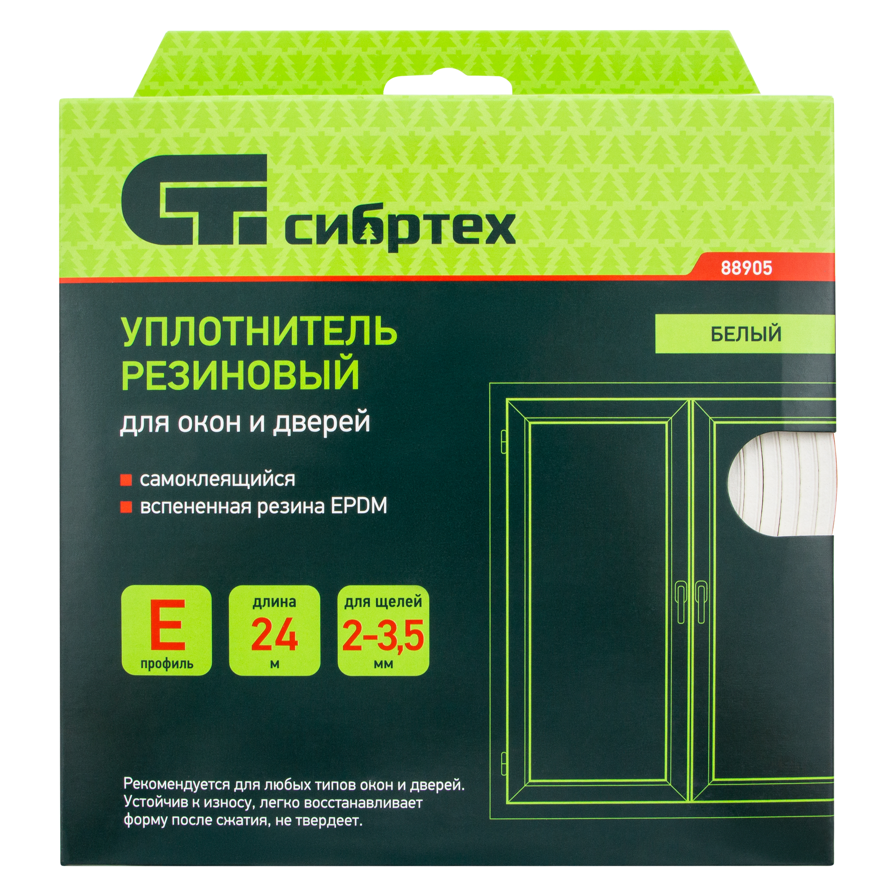 Белый резиновый уплотнитель Сибртех 88905 длиной 24 м, с профилем «E», предназначен для герметизации и уплотнения оконных и дверных блоков с целью предотвращения сквозняков и вибраций, защиты от влаги и пыли, создания эффективной тепло- и звукоизоляции. Клеевой слой обеспечивает высокую адгезию и надежную фиксацию. Использование уплотнителя позволяет значительно снизить энергетические и экономические затраты. Лента с E-профилем 9 х 4 мм подойдет для щелей размером 2-3,5 мм.