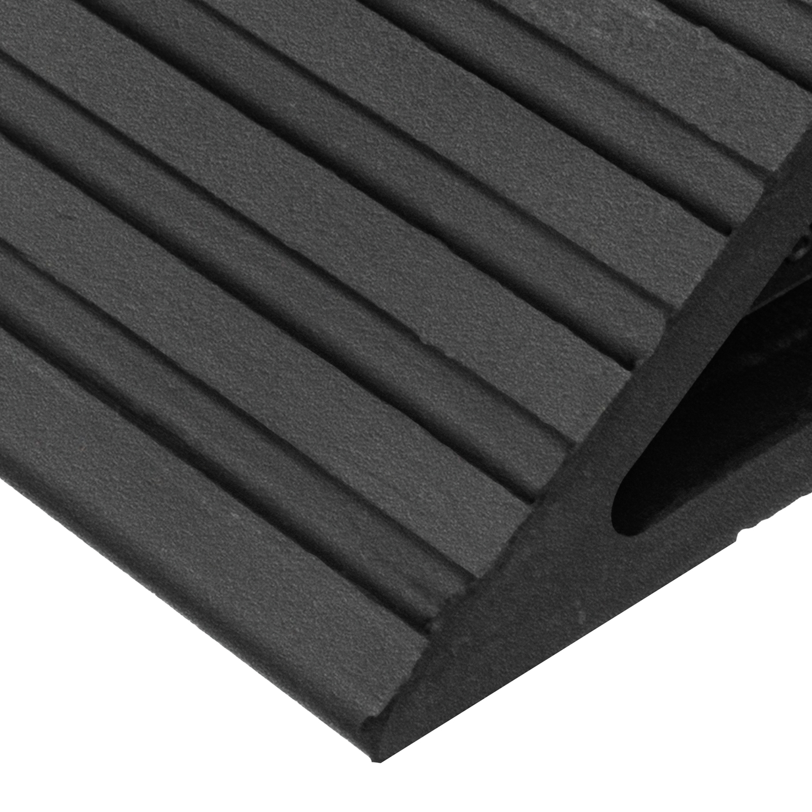 - Надежное сцепление с колесом и основанием — башмак имеет ребристую поверхность.