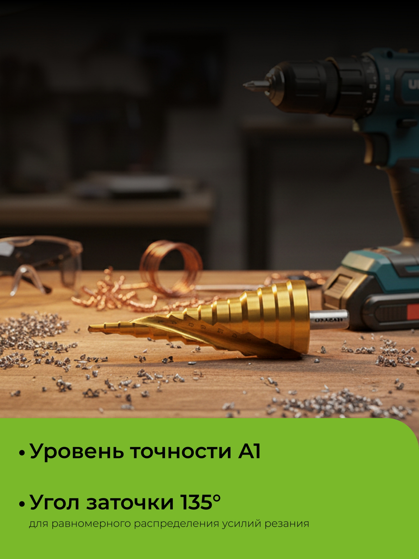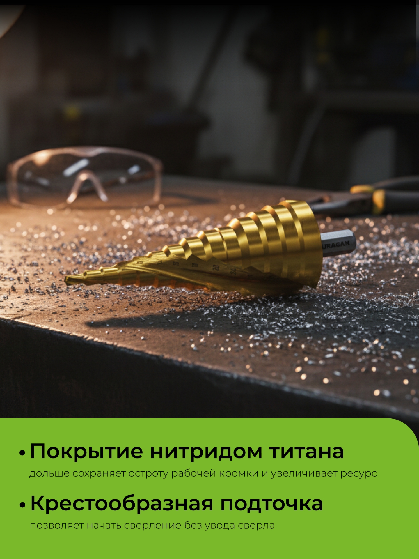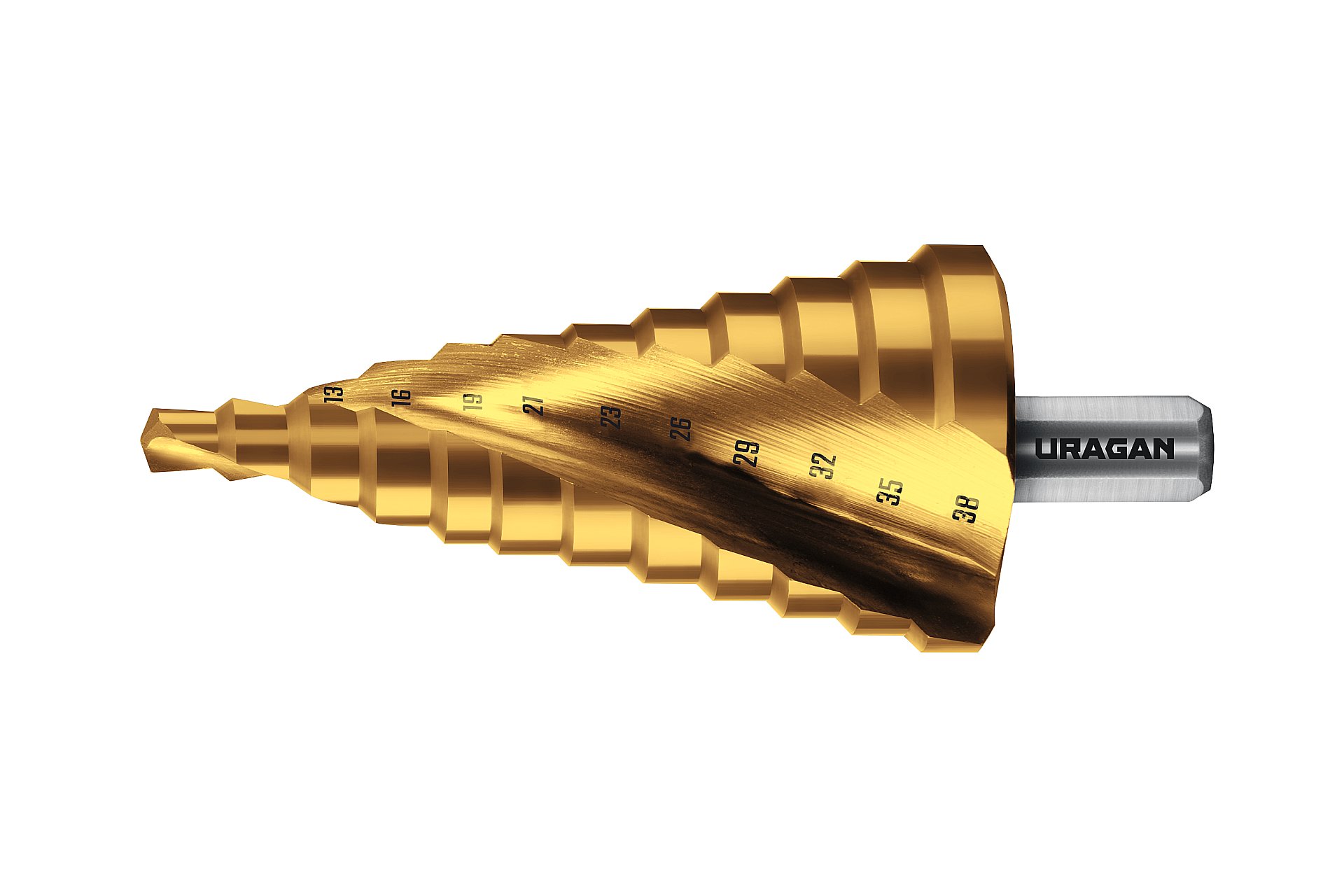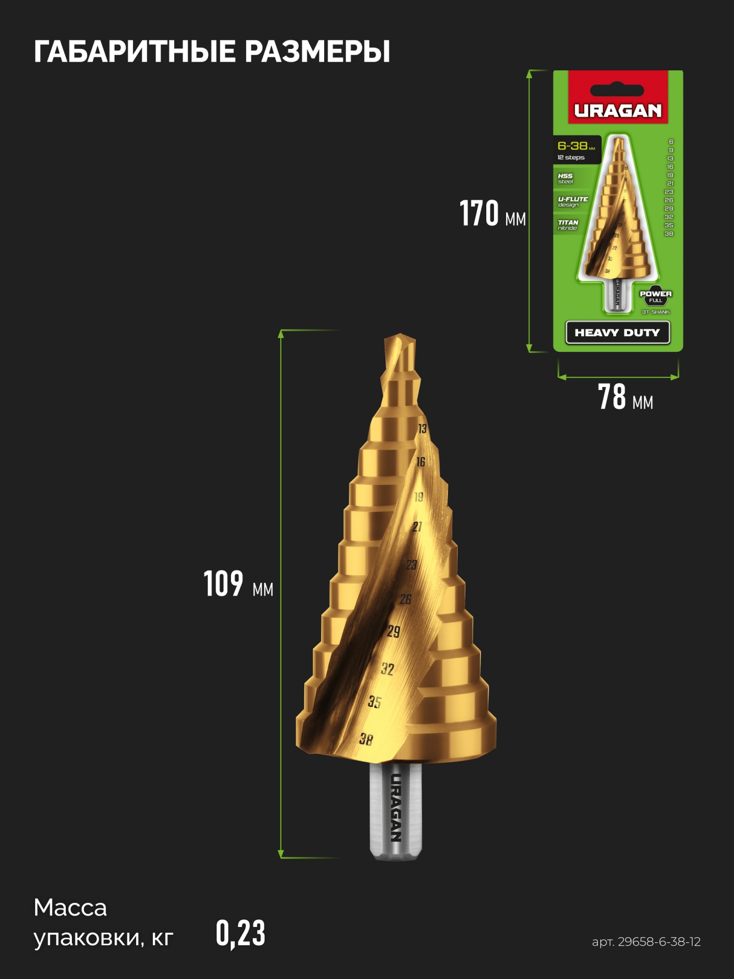 URAGAN 6-38мм, 12 ступеней, винтовая спираль, сверло ступенчатое (29658-6-38-12)