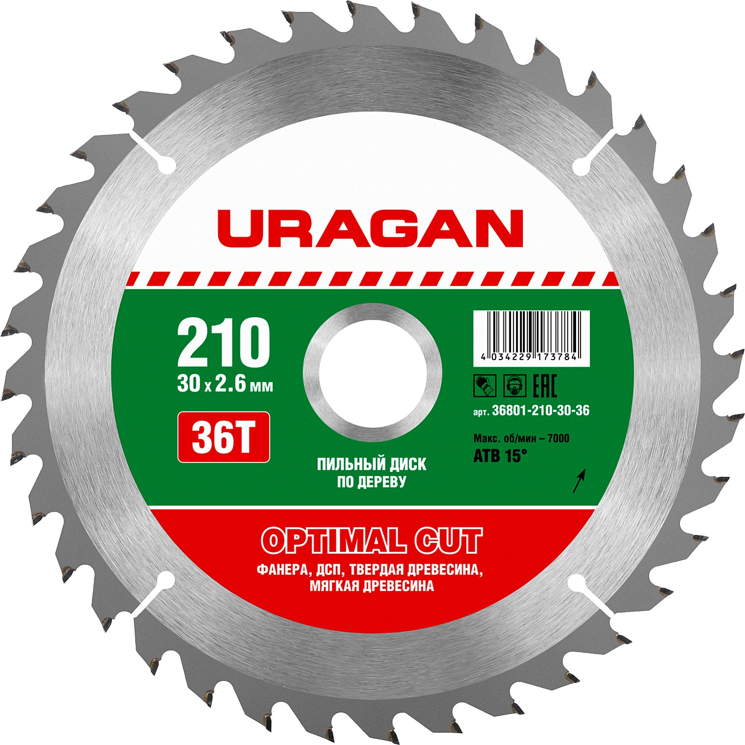 URAGAN Optimal cut, 210 х 30/20 мм, 36Т, пильный диск по дереву (36801-210-30-36)