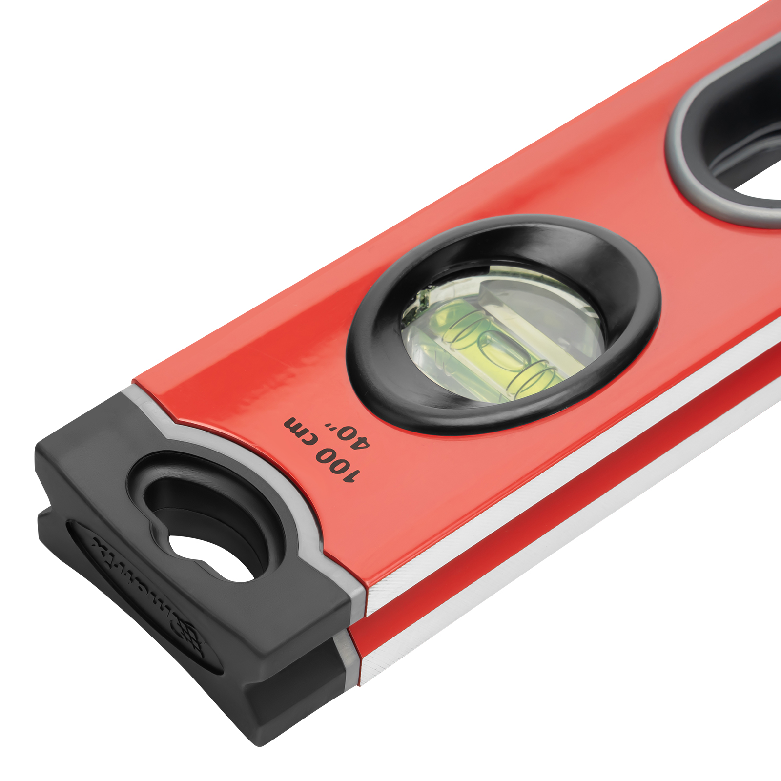Алюминиевый уровень Matrix 34308 длиной 1000 мм, с 3 глазками, ударопрочными заглушками и двухкомпонентными ручками, повышает точность работы, т. к. позволяет обнаружить отклонения от вертикали, горизонтали и угла 45°. Используется для монтажа конструкций, укладки покрытий, облицовки поверхностей и т. д., подходит для профессионального и бытового применения.