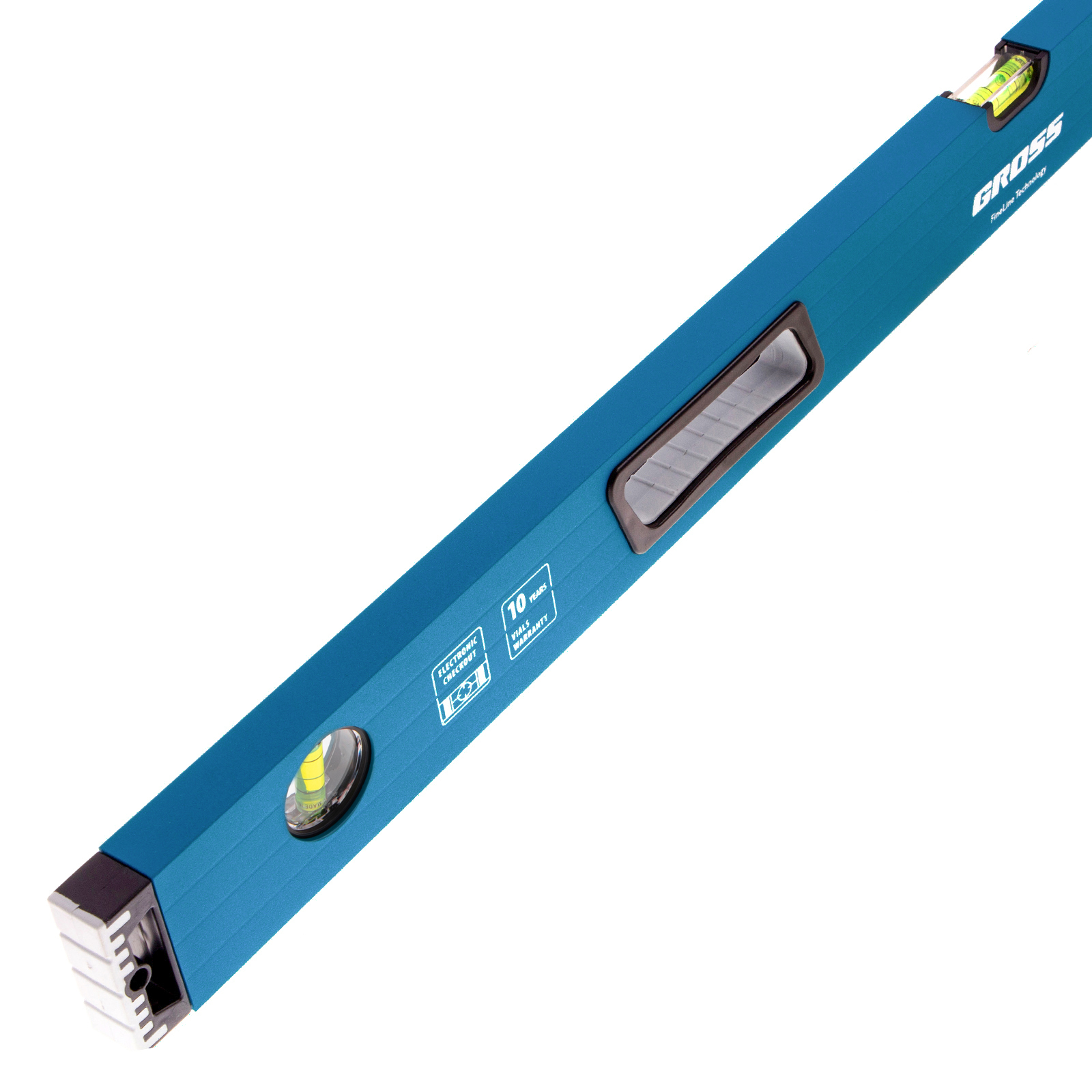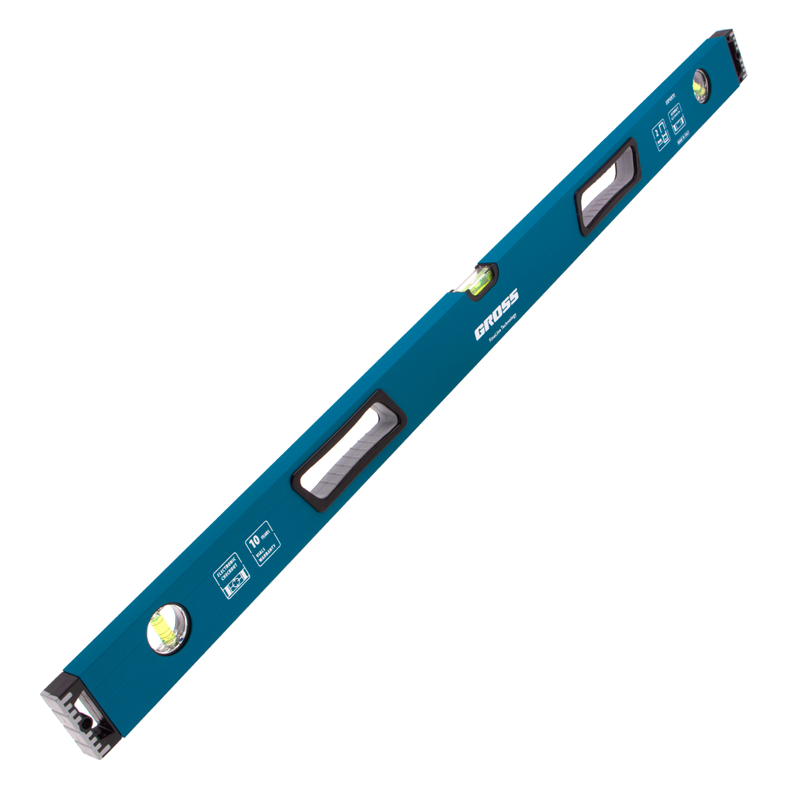 Усиленный алюминиевый уровень Gross 34330 длиной 1000 мм, с ударопрочными заглушками, рукоятками и 3 глазками, — универсальный инструмент для решения профессиональных задач на строительной площадке. Благодаря ему можно выровнять поверхности относительно горизонтали и вертикали или проверить соответствие углу 45 градусов.