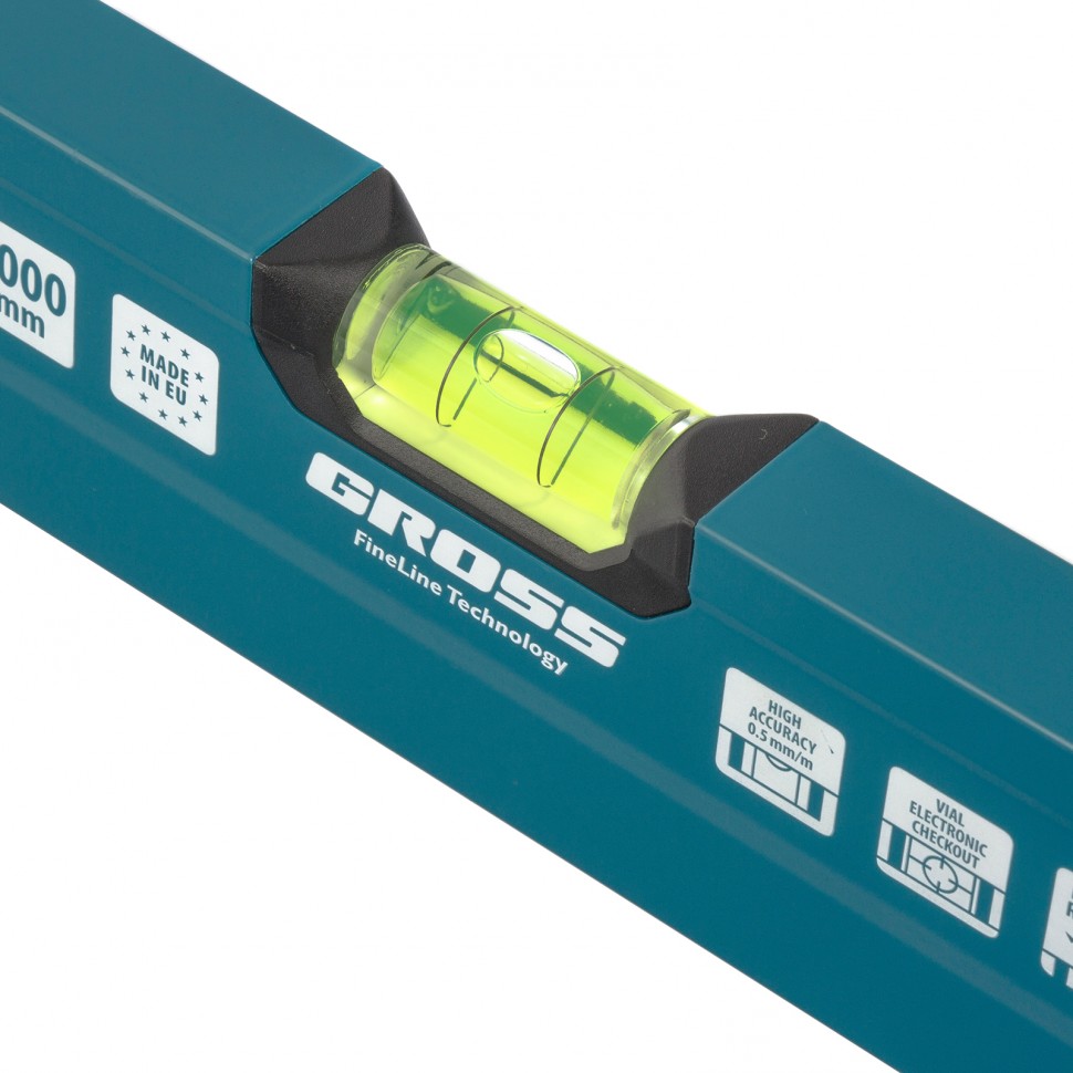 Уровень алюминиевый Gross Prazision 34443 длиной 1200 мм, с 2 рукоятками и 3 глазками, прошедший фрезеровку, будет полезен для проведения монтажных, строительных и ремонтных работ. С его помощью можно проверить наличие отклонений поверхностей от вертикали и горизонтали.