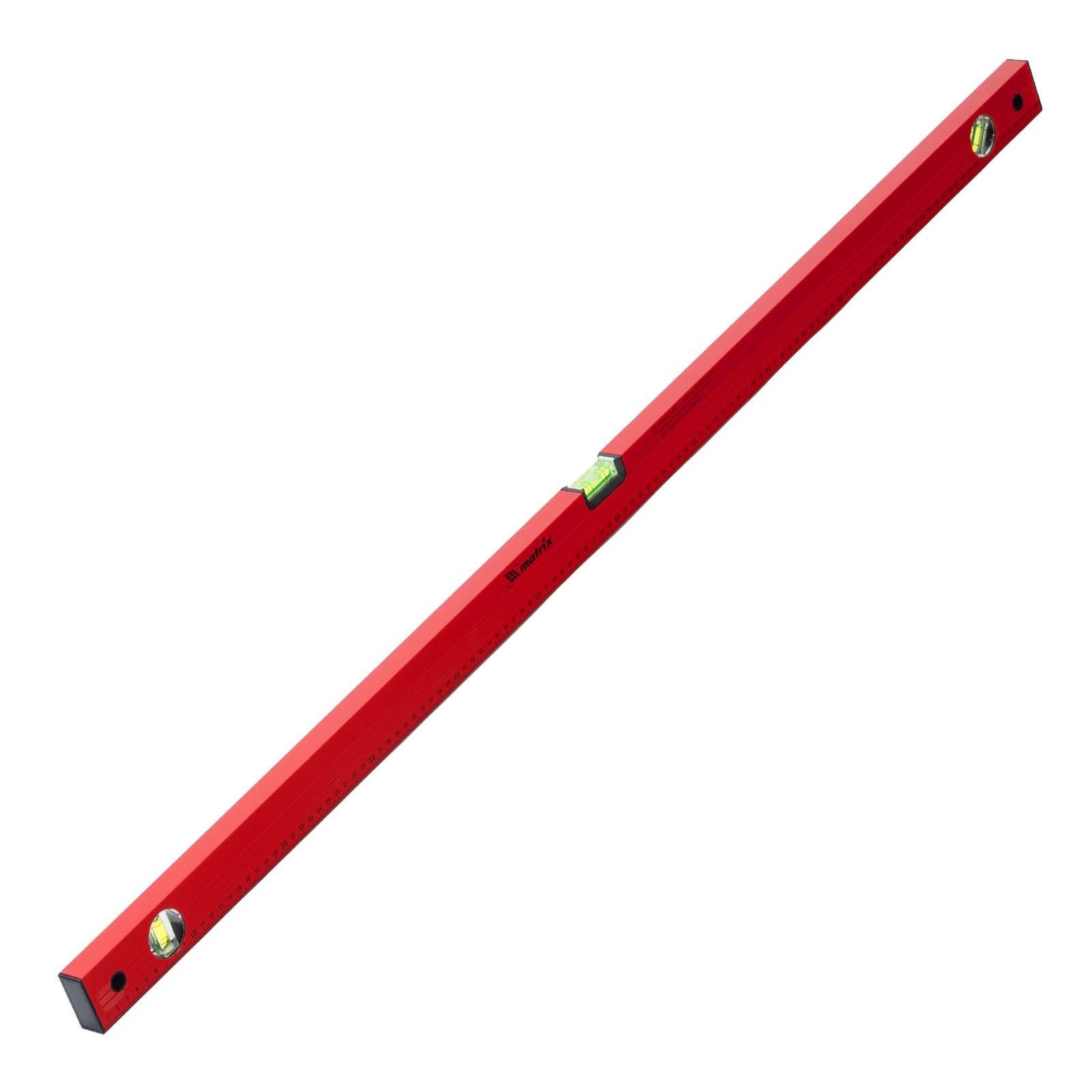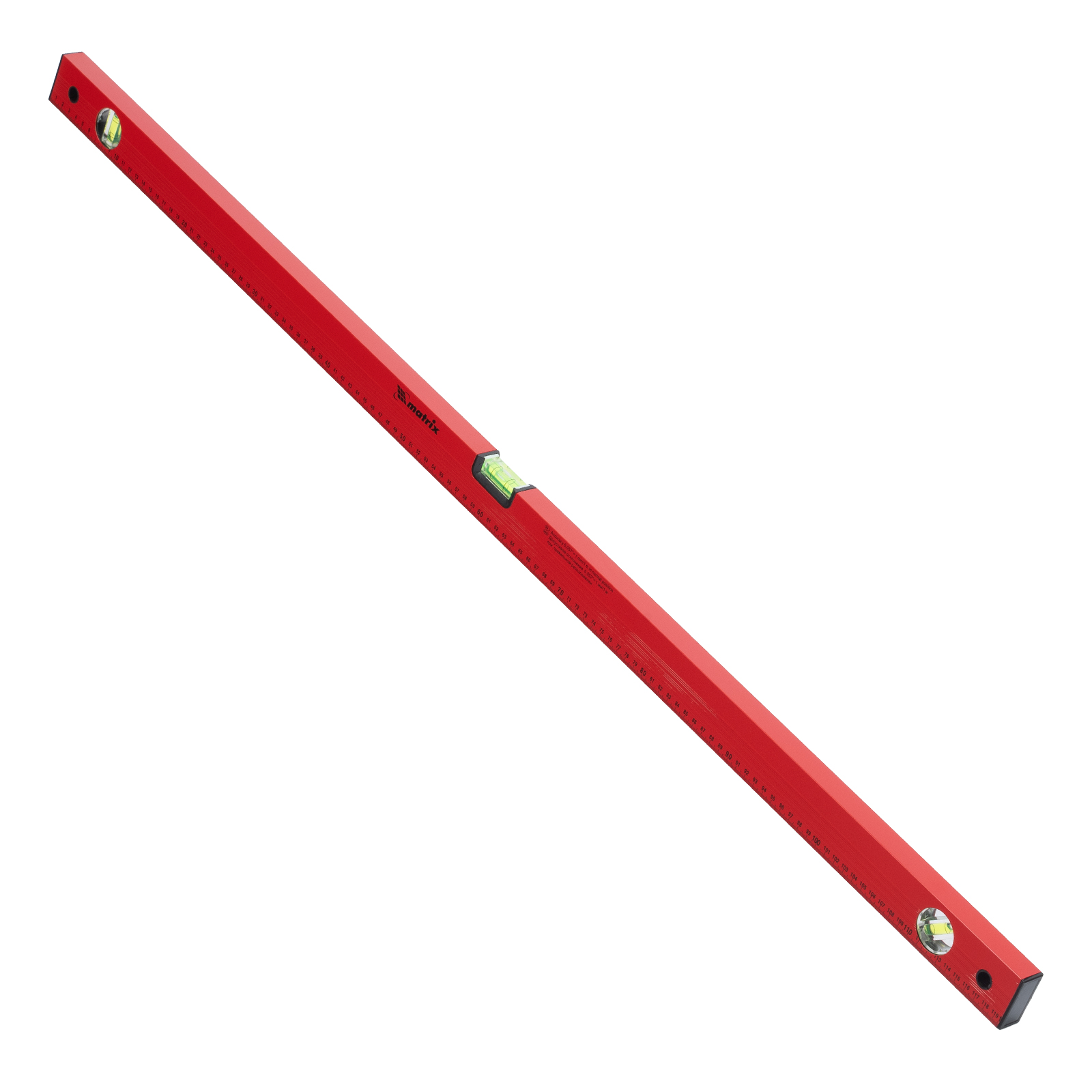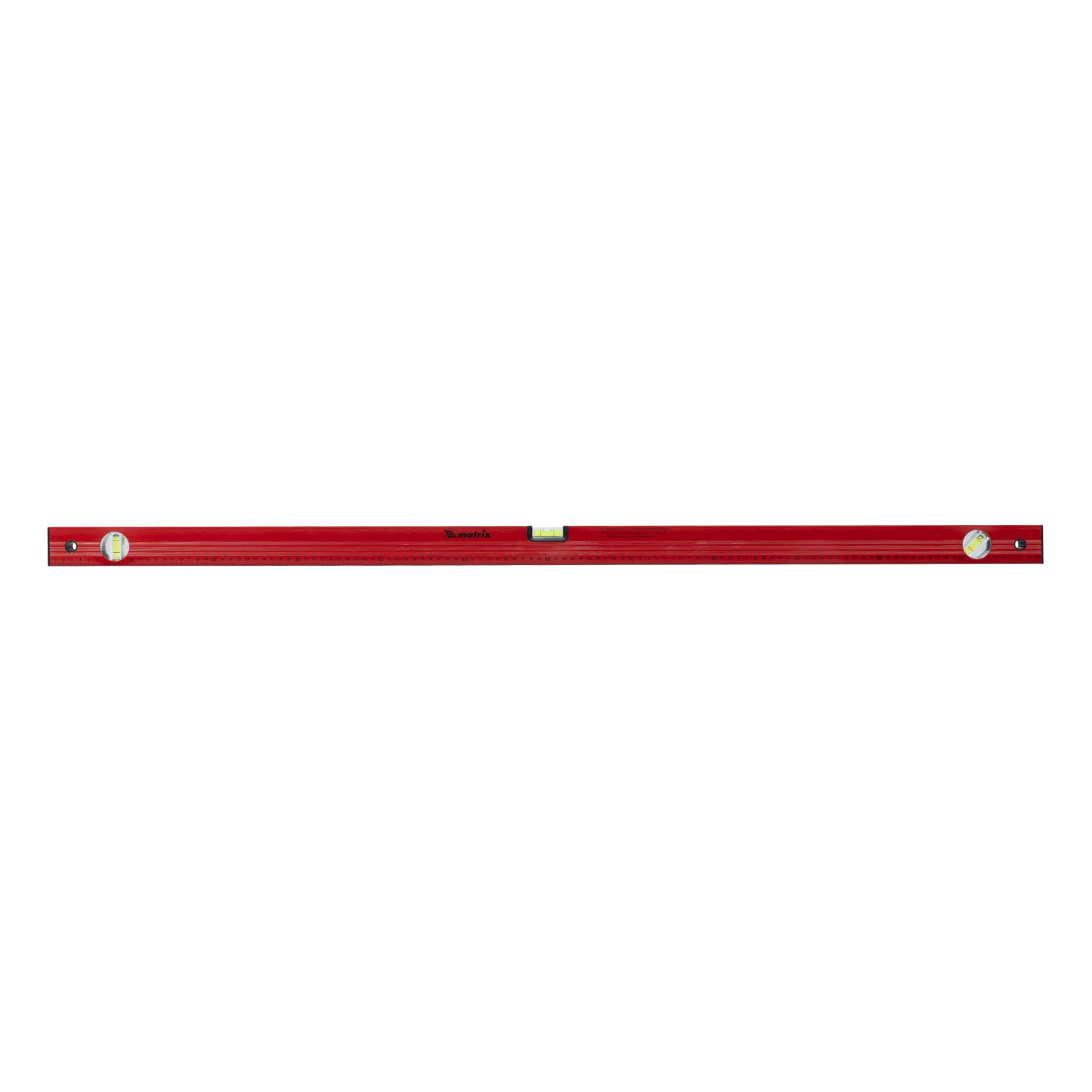 Алюминиевый уровень Matrix 33232 длиной 1200 мм, красного цвета, с 3 глазками и линейкой, пригодится при проведении строительных, ремонтных и монтажных работ. С ним повышается точность работы, что позволяет добиться качественного результата. Три колбы рассчитаны на проверку горизонтали, вертикали и угла 45 градусов, погрешность равна 1 мм/м (0,057 градуса).,Для определения отклонения вертикали 90 градусов необходимо использовать пузырьковую ампулу только в верхнем положении уровня. Только базовая поверхность является рабочей (противоположная ампуле 180 градусов).