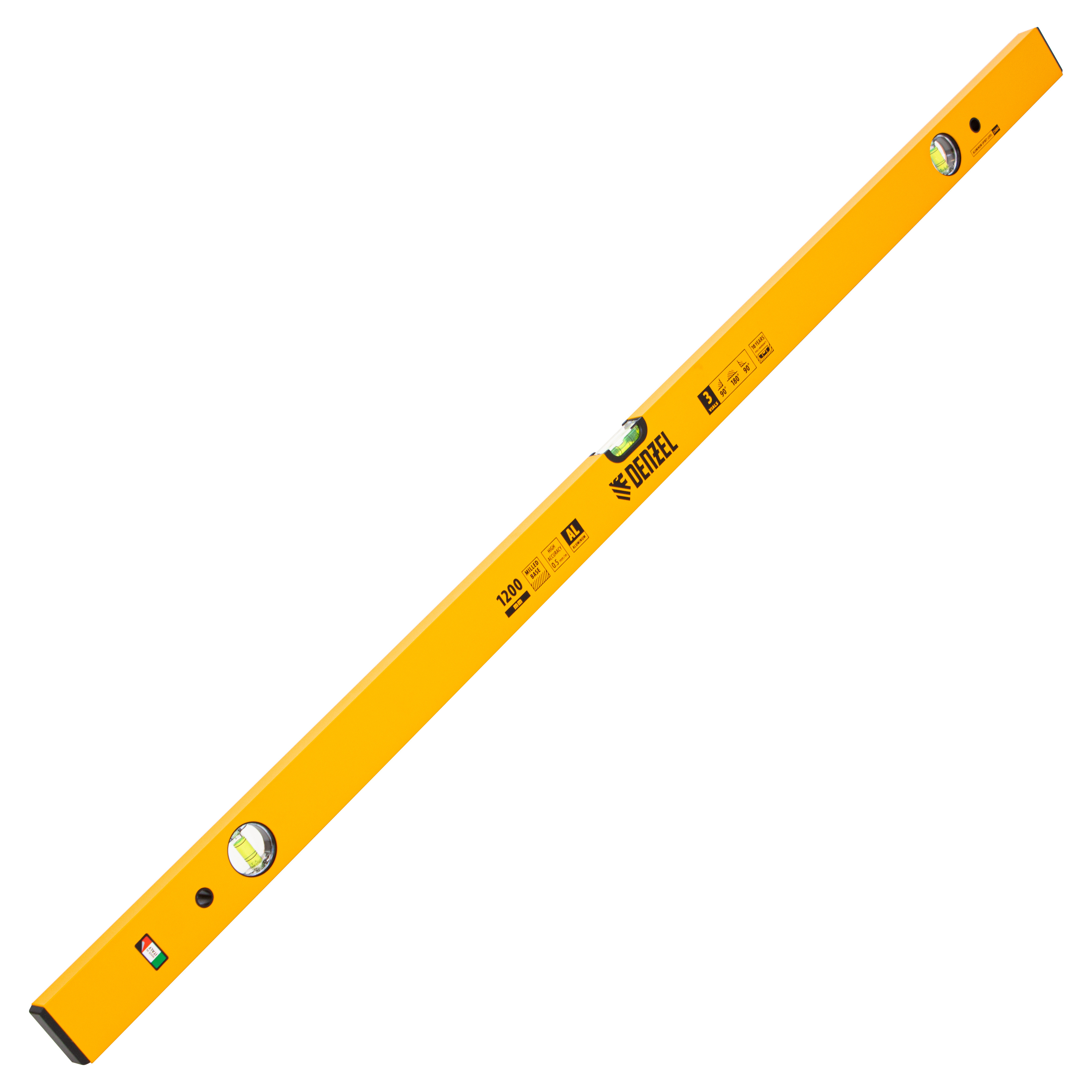 Алюминиевый фрезерованный уровень Denzel 33684 длиной 1200 мм, с 3 глазками, используется для контроля вертикальных и горизонтальных плоскостей. Позволяет получить качественный результат при выполнении строительных и отделочных работ.