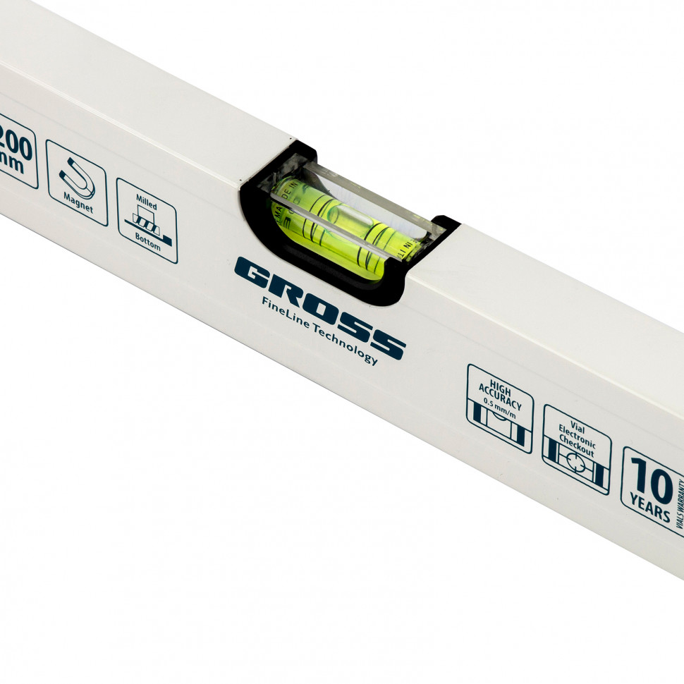 Уровень алюминиевый фрезерованный Gross 33674 длиной 1200 мм, магнитный, с 3 глазками, — незаменимый инструмент в быту и на строительной площадке. Позволяет выявить погрешности измерений, отклонения от заданной вертикали и горизонтали.