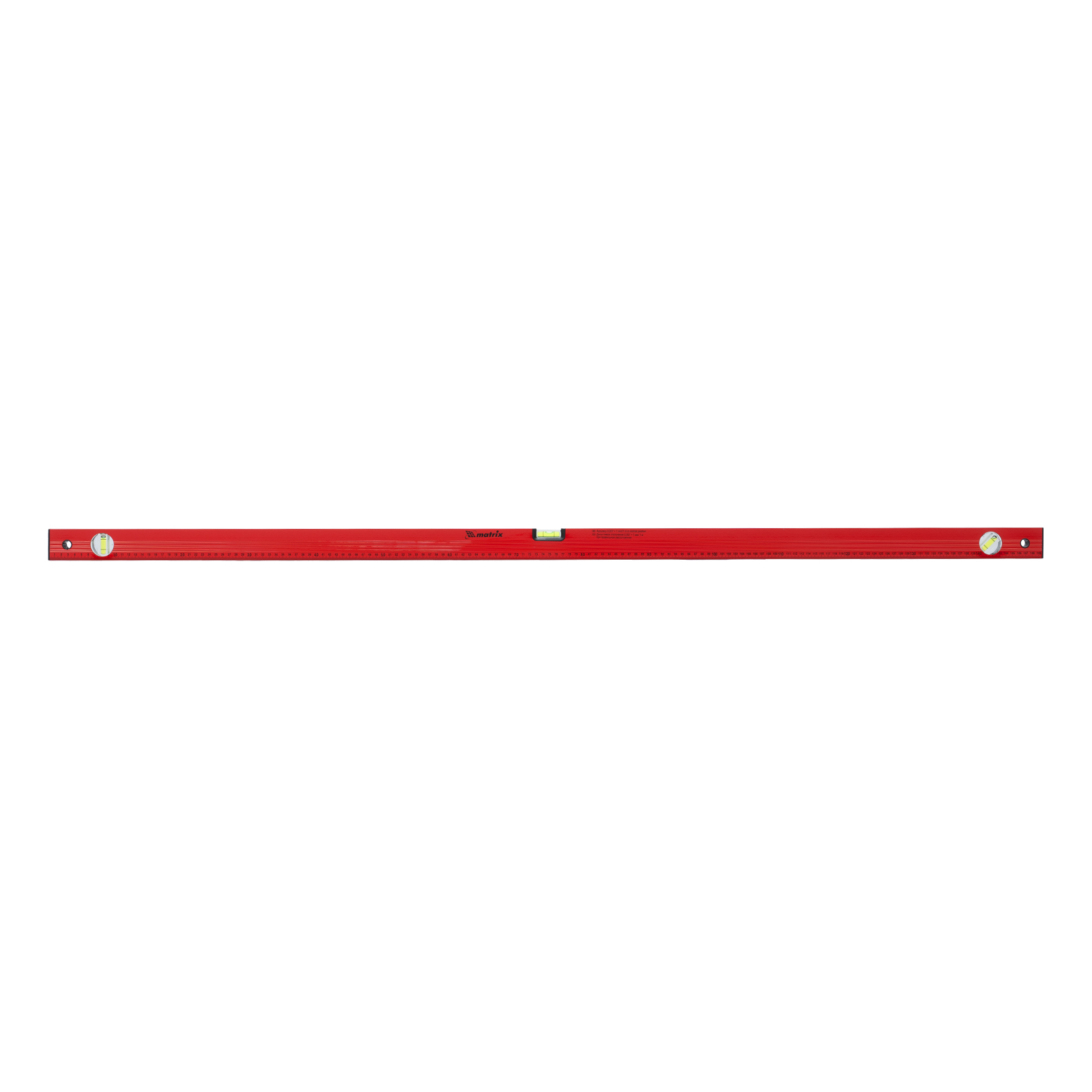 Алюминиевый уровень Matrix 33235 длиной 1500 мм, красного цвета, с 3 глазками и линейкой, пригодится при проведении строительных, ремонтных и монтажных работ. С ним повышается точность работы, что позволяет добиться качественного результата. Три колбы рассчитаны на проверку горизонтали, вертикали и угла 45 градусов, погрешность равна 1 мм/м (0,057 градуса).,Для определения отклонения вертикали 90 градусов необходимо использовать пузырьковую ампулу только в верхнем положении уровня. Только базовая поверхность является рабочей (противоположная ампуле 180 градусов).