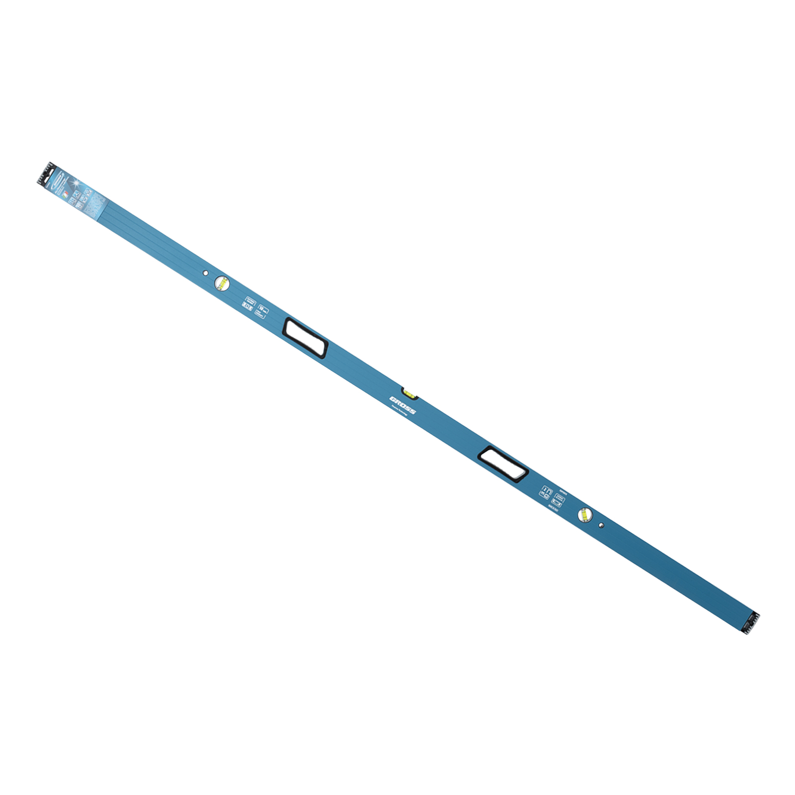 Усиленный алюминиевый уровень Gross 34340 длиной 2000 мм, с ударопрочными заглушками, рукоятками и 3 глазками, — универсальный инструмент для решения профессиональных задач на строительной площадке. Благодаря ему можно выровнять поверхности относительно горизонтали и вертикали или проверить соответствие углу 45 градусов.