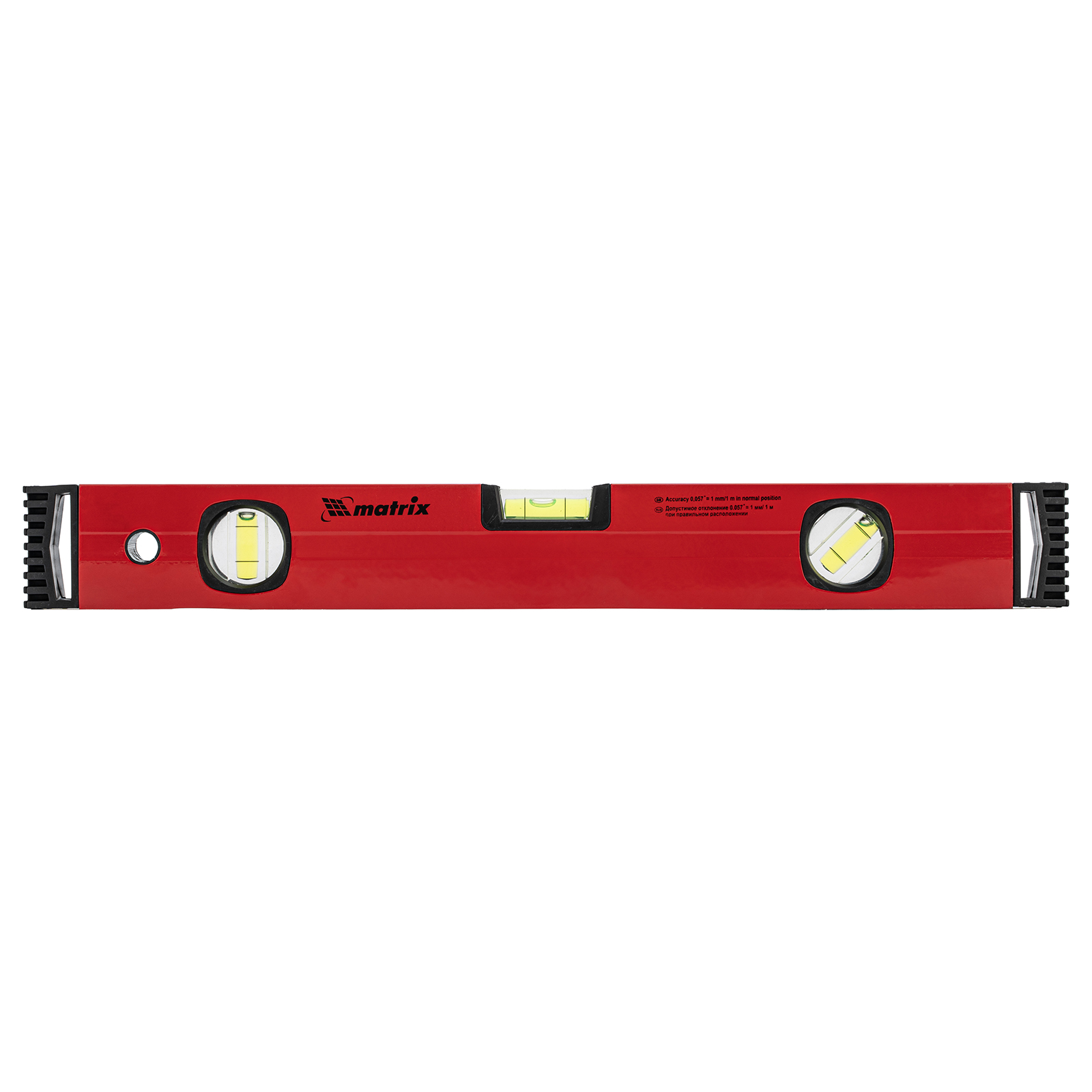 Фрезерованный алюминиевый уровень Matrix 33604 длиной 400 мм, с 3 глазками, пригодится мастерам во время строительства, ремонта и выполнения монтажных работ. Уровень с 3 глазками служит для проверки горизонтали и вертикали, а также угла 45 градусов.,Для определения отклонения вертикали 90 градусов необходимо использовать пузырьковую ампулу только в верхнем положении уровня. Только базовая поверхность является рабочей (противоположная ампуле 180 градусов).