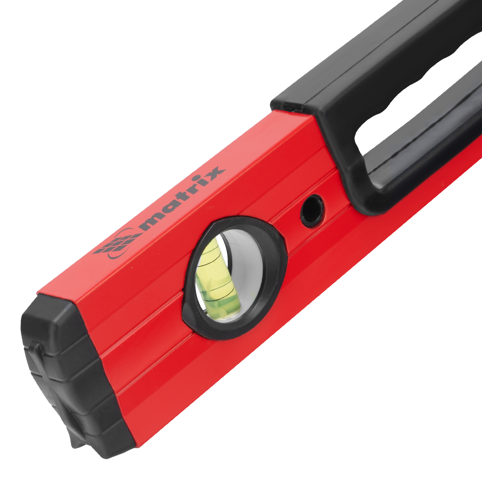 Фрезерованный алюминиевый уровень Matrix 33221 длиной 600 мм, с 3 глазками и 2 эргономичными ручками, поможет проверить горизонтальные и вертикальные поверхности, выставить угол 45 градусов. Он будет полезен на любом этапе строительства и ремонта: при облицовке и отделке поверхностей, монтаже конструкций и т.д. Погрешность измерений на метр не превышает 1 мм (0,057 градуса).,Для определения отклонения вертикали 90 градусов необходимо использовать пузырьковую ампулу только в верхнем положении уровня. Только базовая поверхность является рабочей (противоположная ампуле 180 градусов).