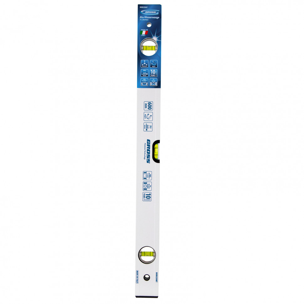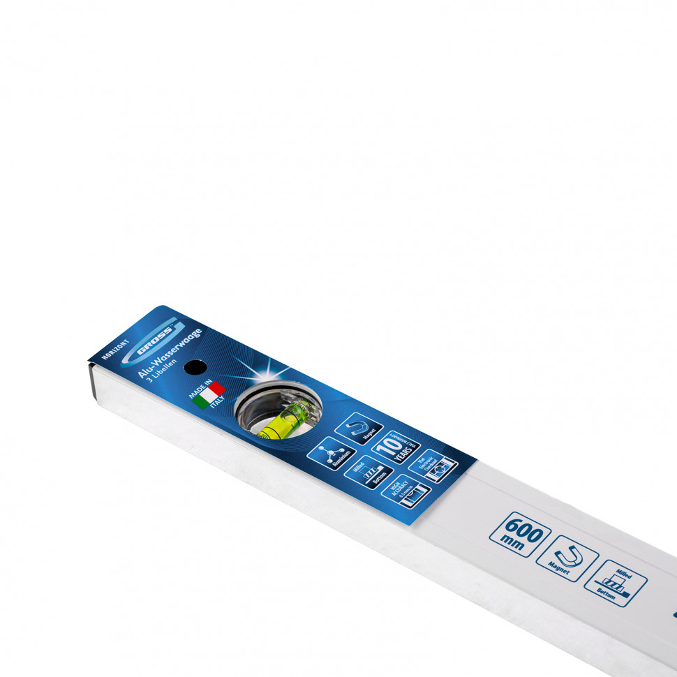 Уровень алюминиевый фрезерованный Gross 33671 длиной 600 мм, магнитный, с 3 глазками, — незаменимый инструмент в быту и на строительной площадке. Позволяет выявить погрешности измерений, отклонения от заданной вертикали и горизонтали.