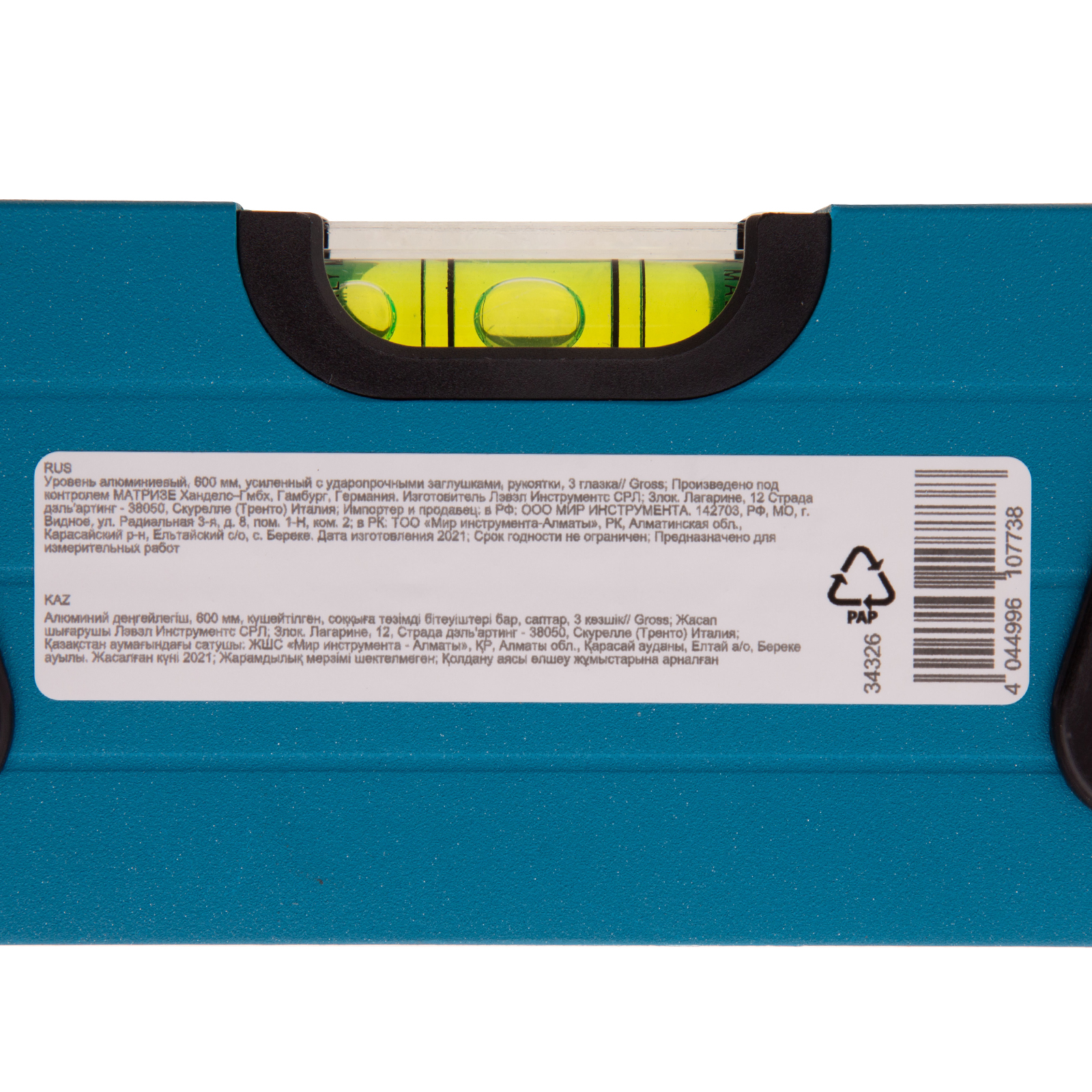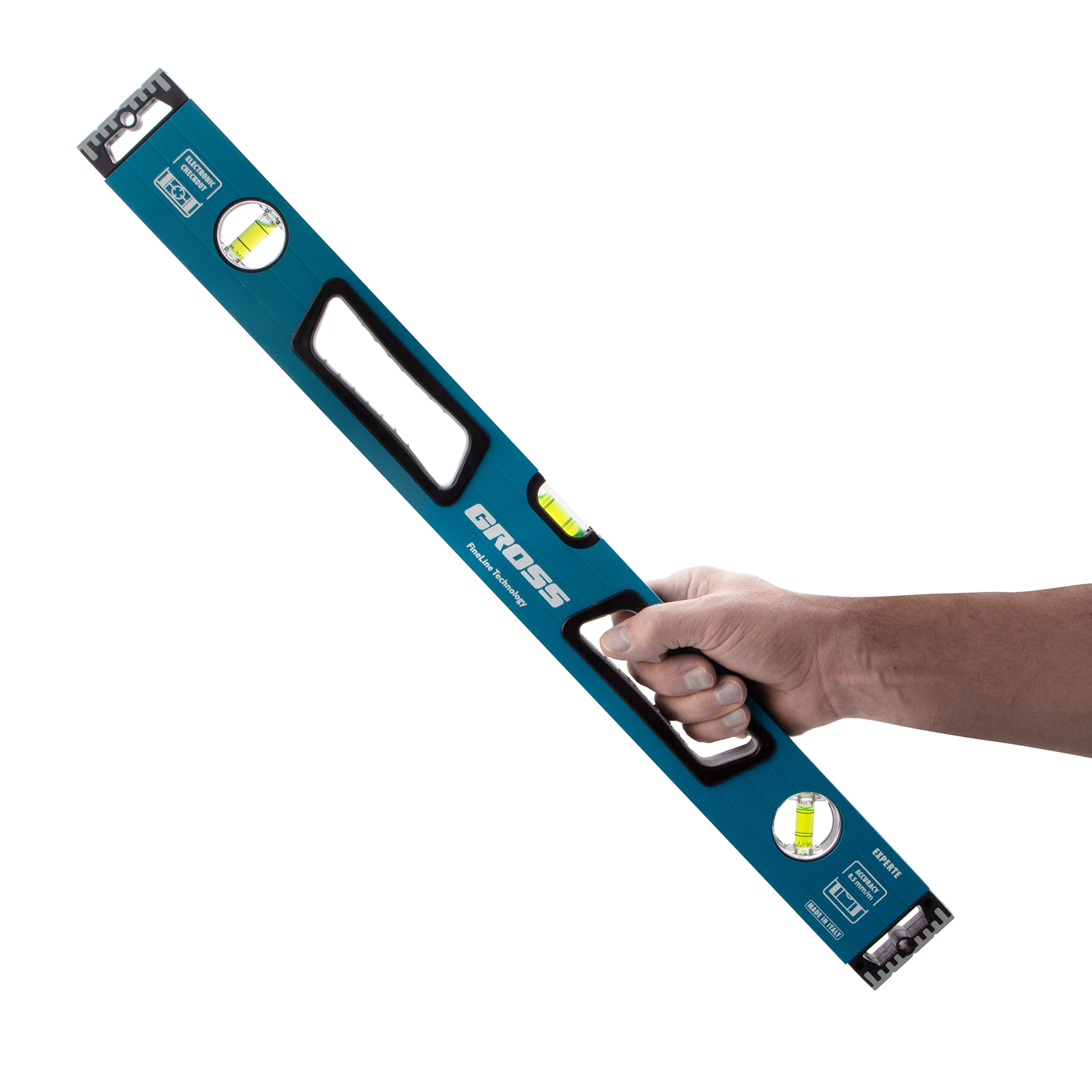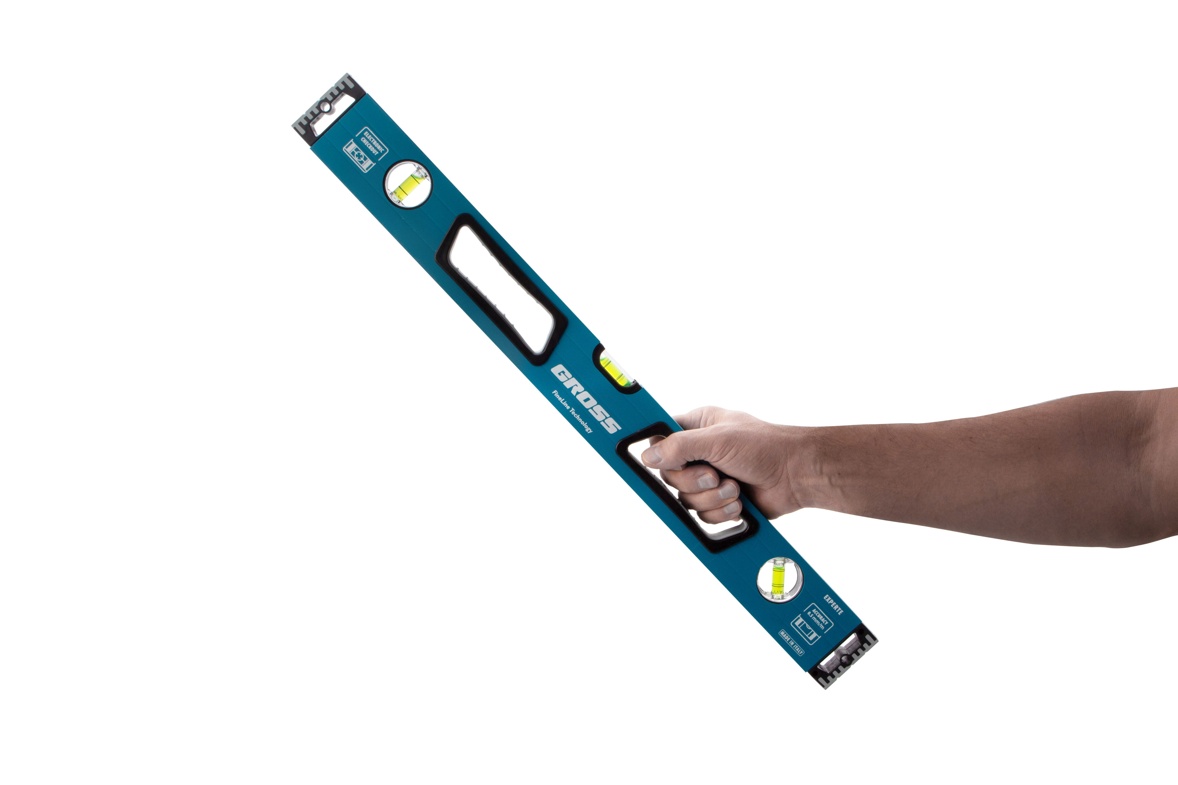 Усиленный алюминиевый уровень Gross 34326 длиной 600 мм, с ударопрочными заглушками, рукоятками и 3 глазками, — универсальный инструмент для решения профессиональных задач на строительной площадке. Благодаря ему можно выровнять поверхности относительно горизонтали и вертикали или проверить соответствие углу 45 градусов.