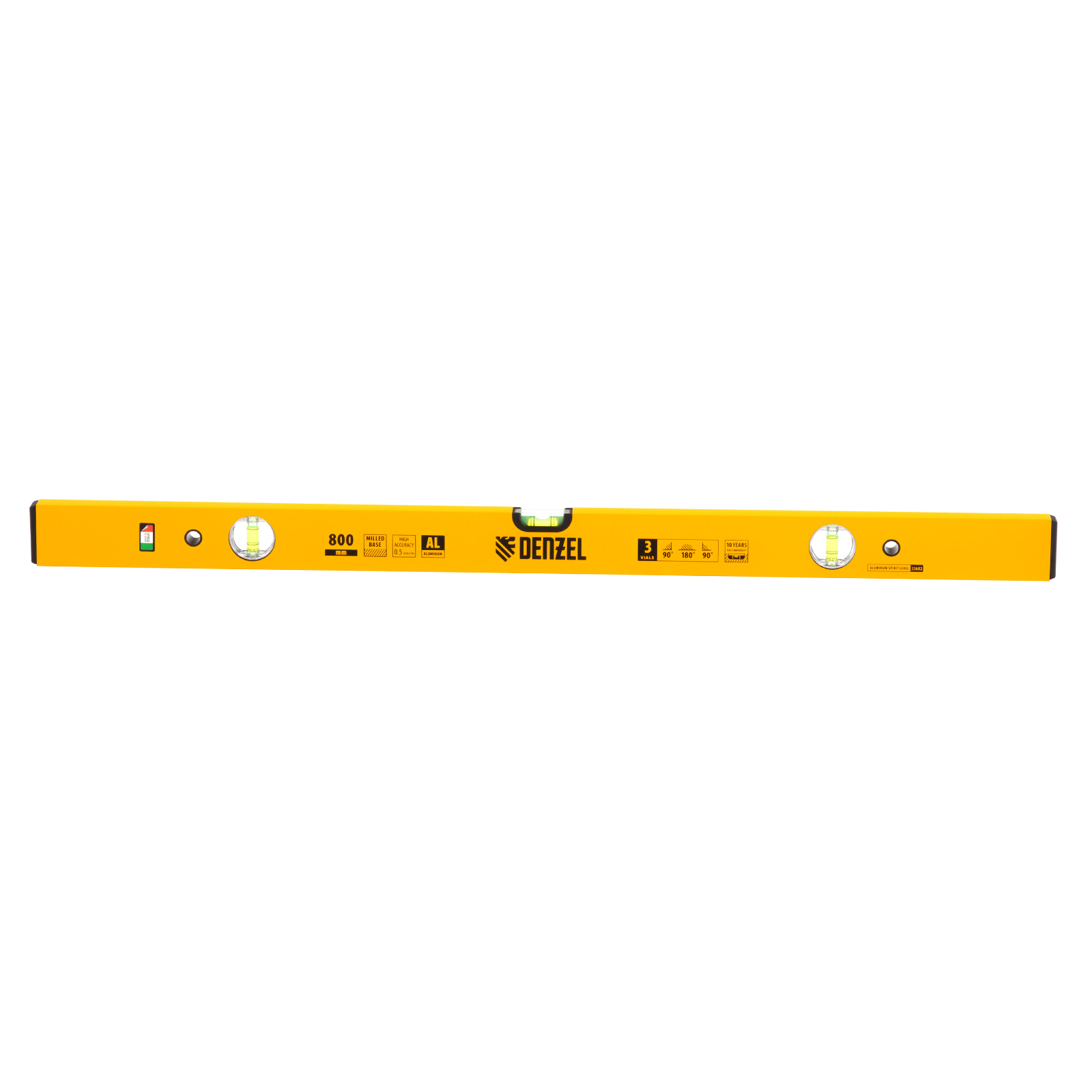 Алюминиевый фрезерованный уровень Denzel 33682 длиной 800 мм, с 3 глазками, используется для контроля вертикальных и горизонтальных плоскостей. Позволяет получить качественный результат при выполнении строительных и отделочных работ.