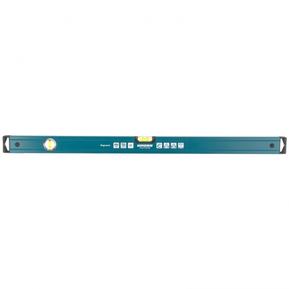 Алюминиевый уровень Gross Magnetisch 33712 длиной 800 мм имеет 2 глазка для определения отклонений от вертикали или горизонтали. Пригодится для решения как бытовых, так и профессиональных задач во время строительства или ремонта. Погрешность при проведении замеров не превышает 1 мм на метр (0,057 градуса).,Для определения отклонения вертикали 90 градусов необходимо использовать пузырьковую ампулу только в верхнем положении уровня. Только базовая поверхность является рабочей (противоположная ампуле 180 градусов).