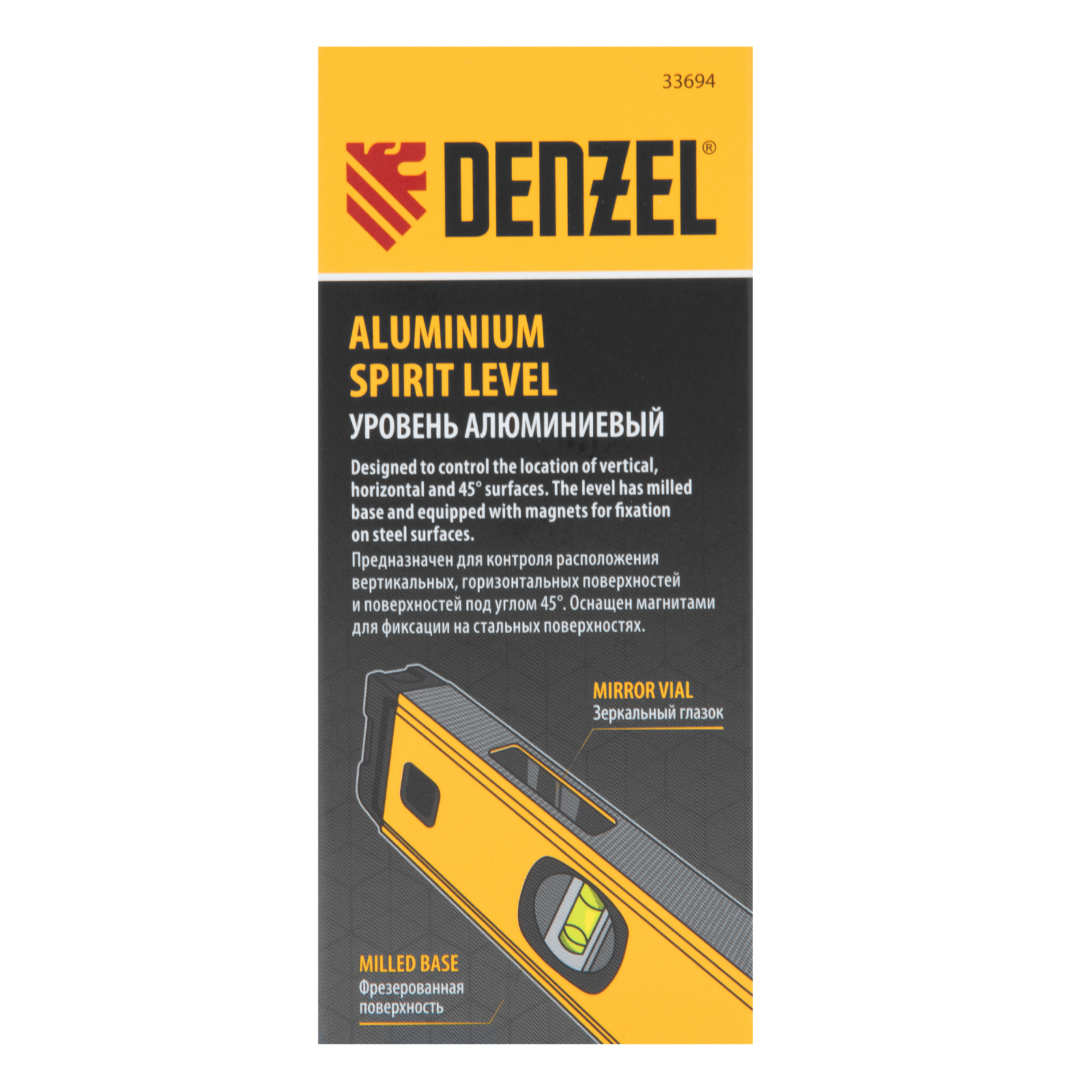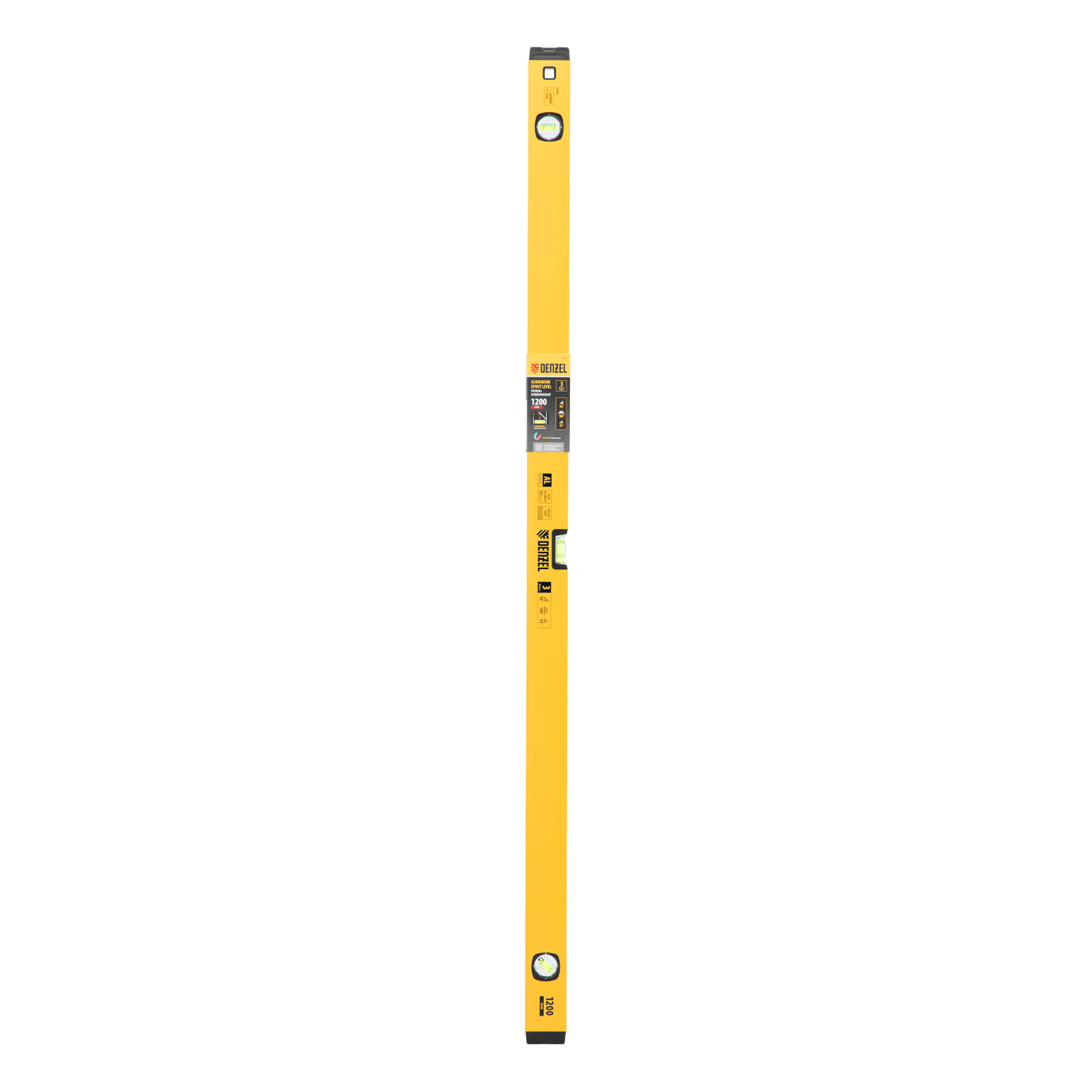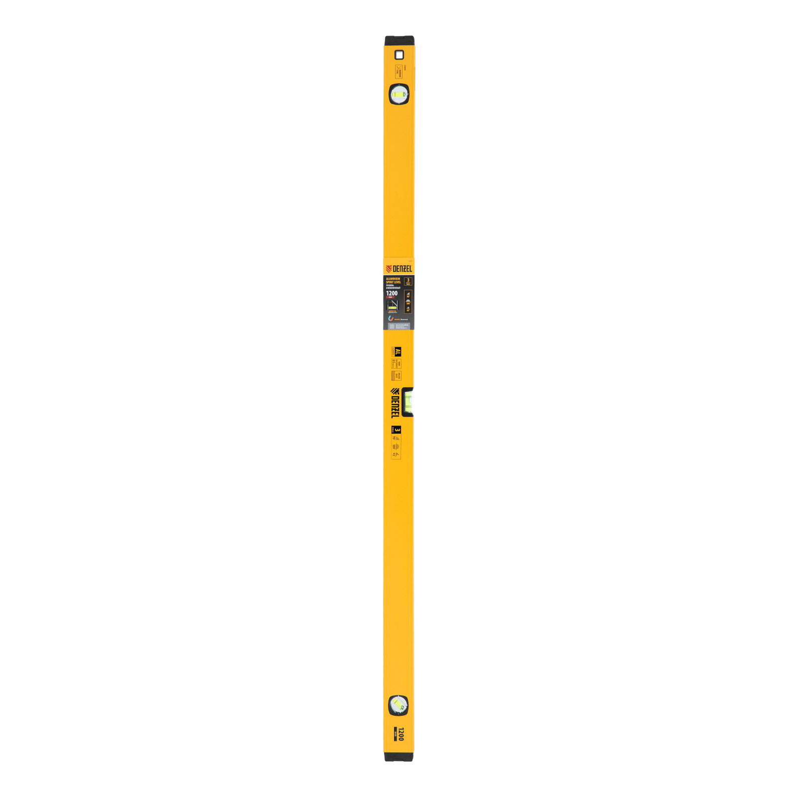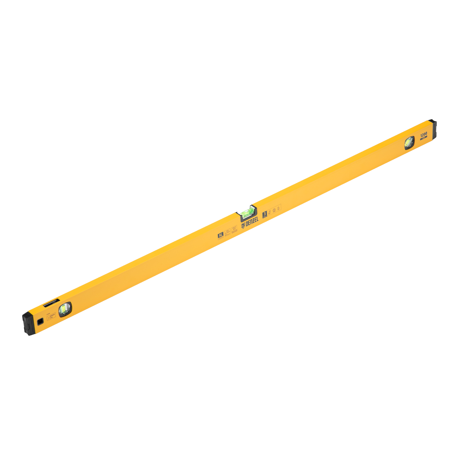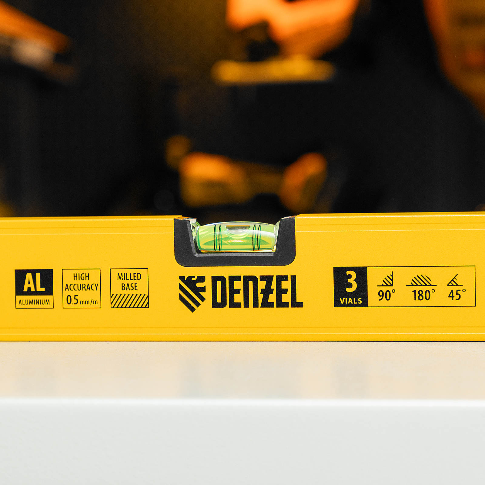 Алюминиевый фрезерованный уровень Denzel 33694 длиной 1200 мм, с магнитом и 3 глазками, из которых 1 зеркальный, предназначен для контроля отклонений от горизонтальной, вертикальной и поверхности под углом 45° с точностью 0,5 мм/м. 3 пузырьковые камеры 90°, 180° и 45° позволяют быстро проверить правильность разметки. Инструмент незаменим при проведении строительных, ремонтных, сантехнических работ.