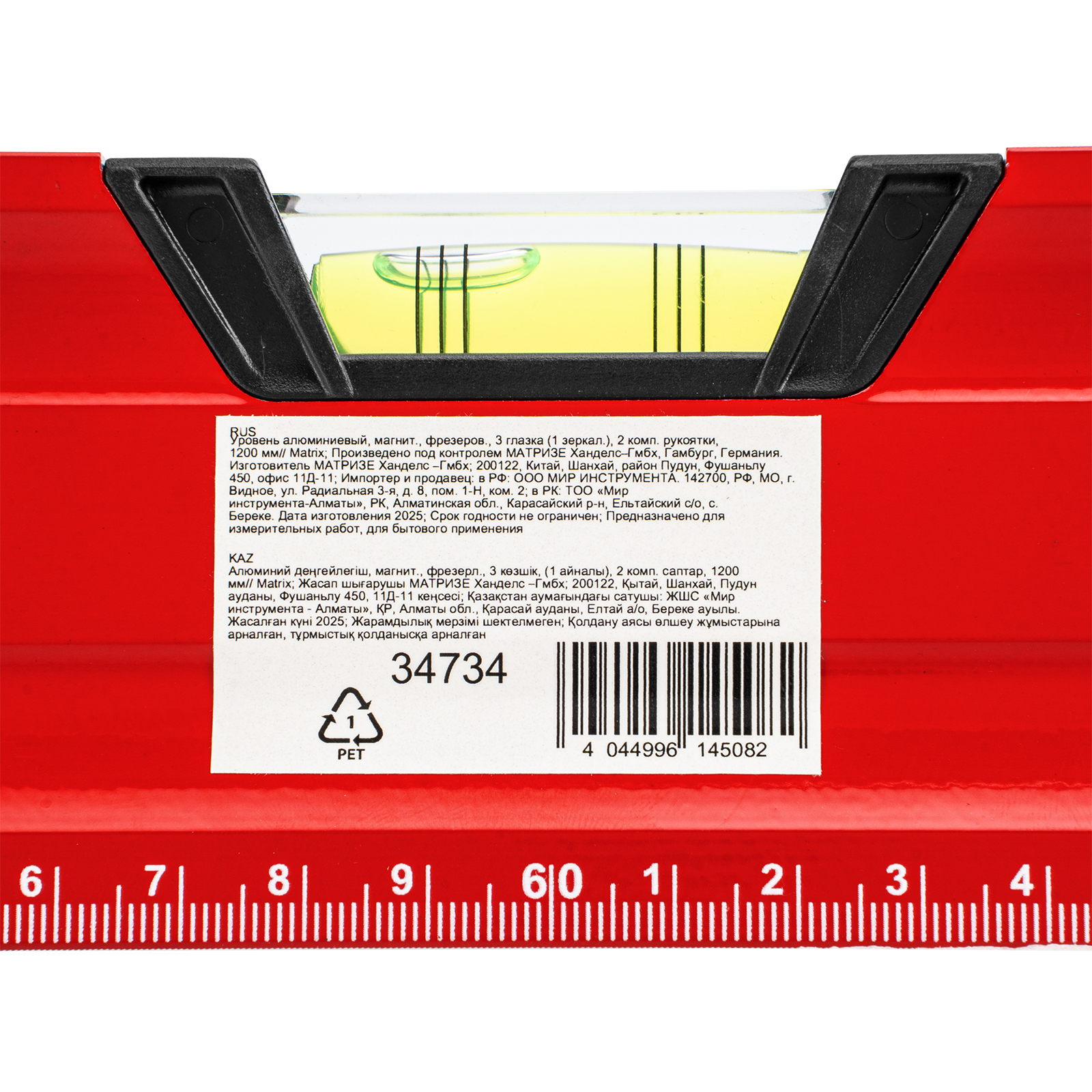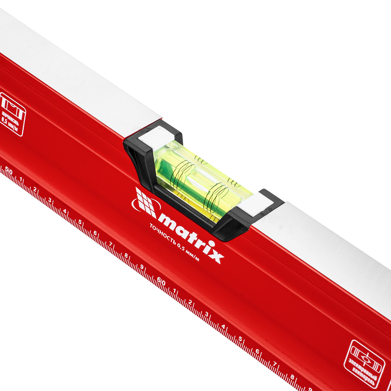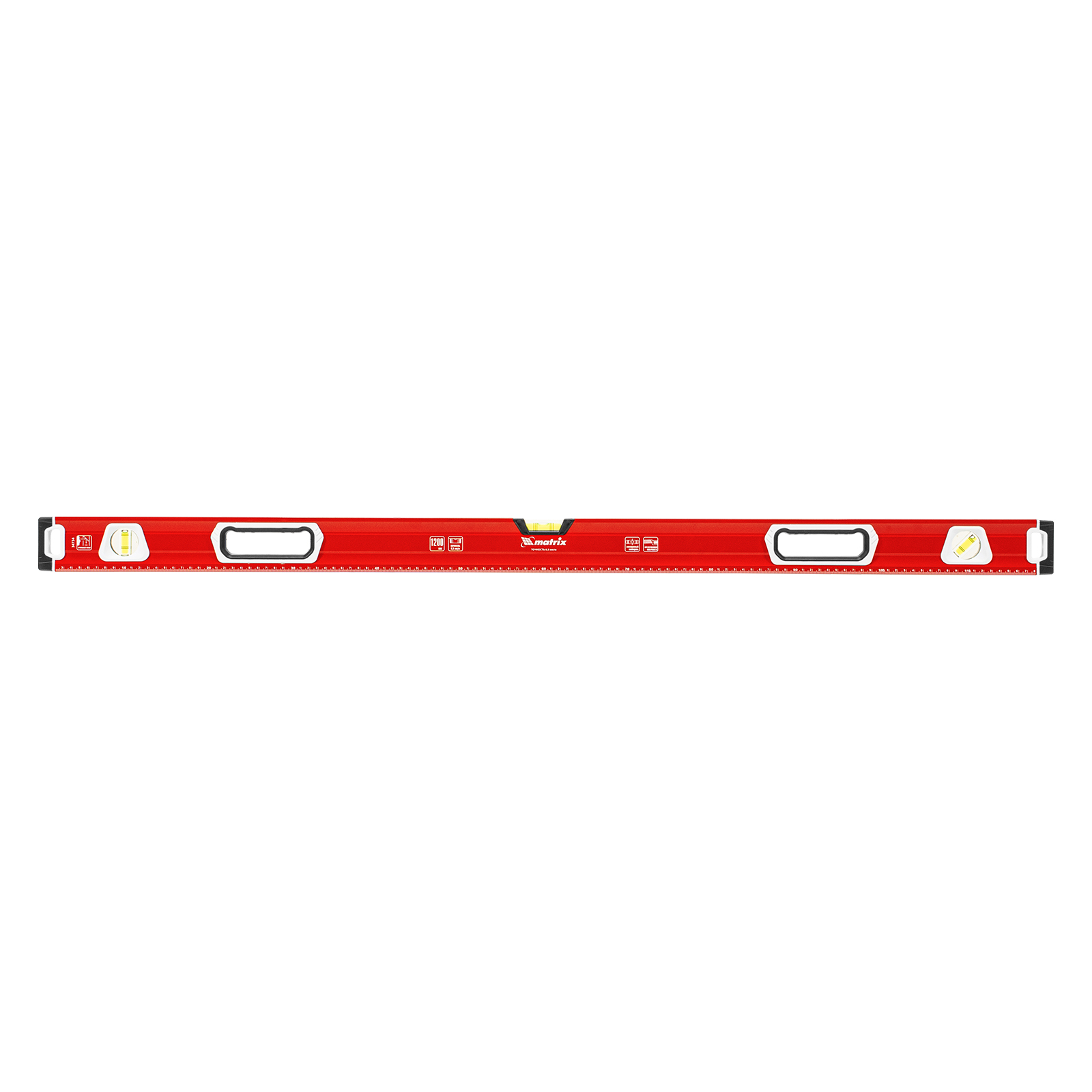 Уровень алюминиевый фрезерованный Matrix 34734 длиной 1200 мм, с магнитной полосой и 2-компонентными рукоятками, 3 глазками и 1 зеркальным отражателем, — измерительный инструмент для контроля отклонений поверхностей от горизонтали, вертикали и угла 45°. Используется для выполнения работ, требующих высокой точности.