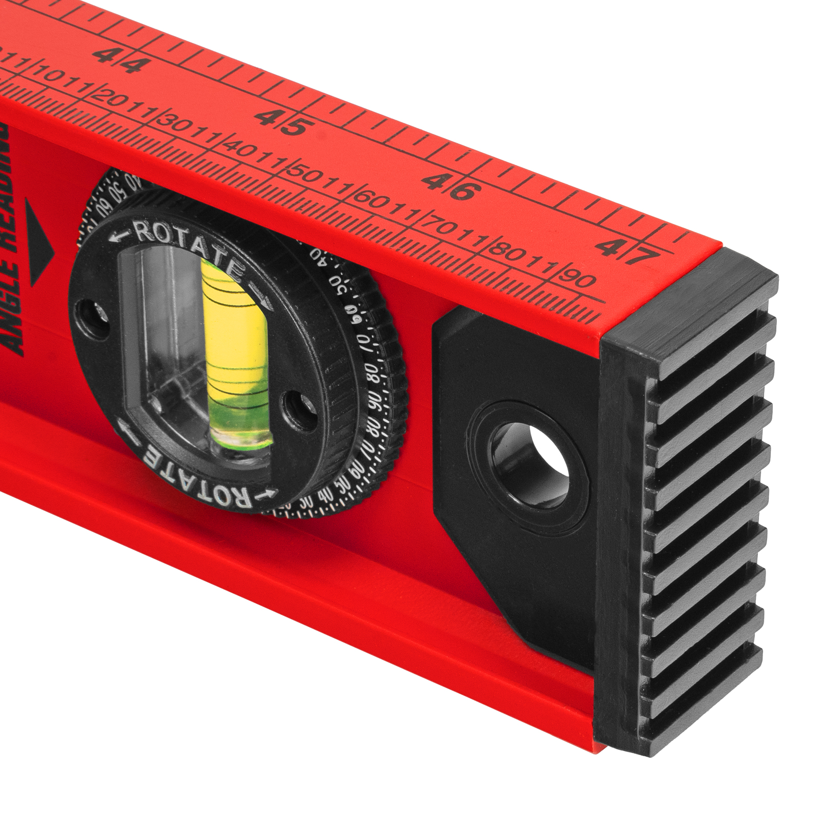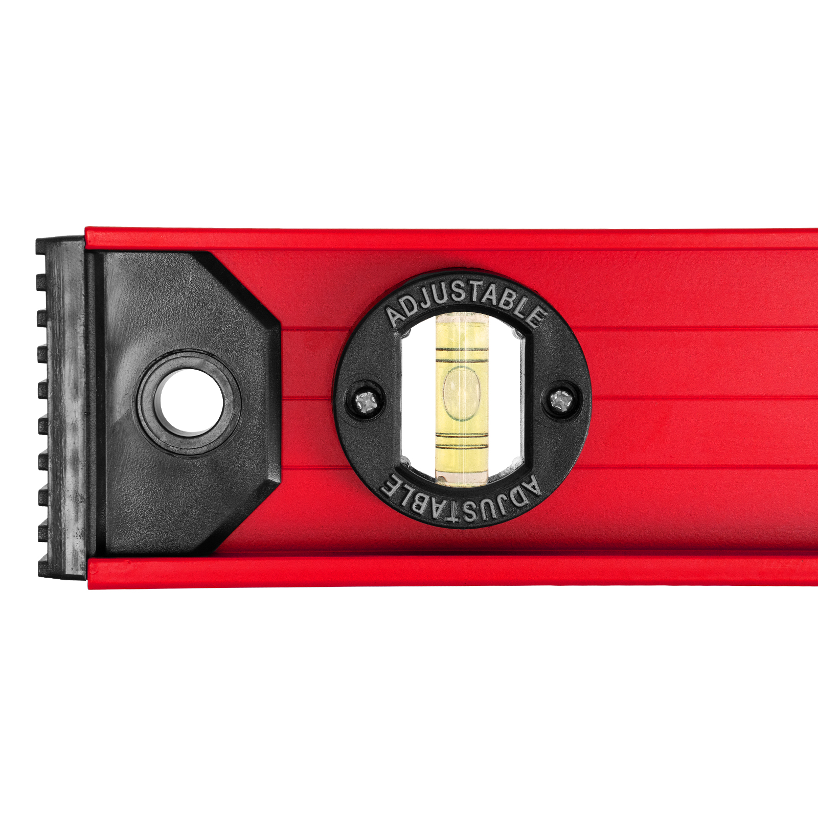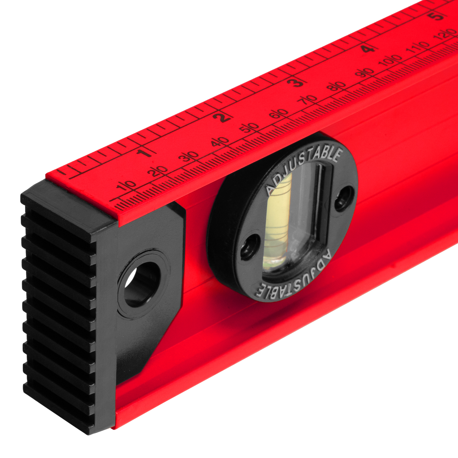 Уровень алюминиевый усиленный Matrix «Рельс» 34012 длиной 1200 мм снабжен 3 глазками для проверки отклонений относительно горизонтальной и вертикальной плоскостей. Поворотный глазок уровня позволяет выстроить произвольный угол. Инструмент пригодится строителю, отделочнику, бетонщику и другим специалистам.