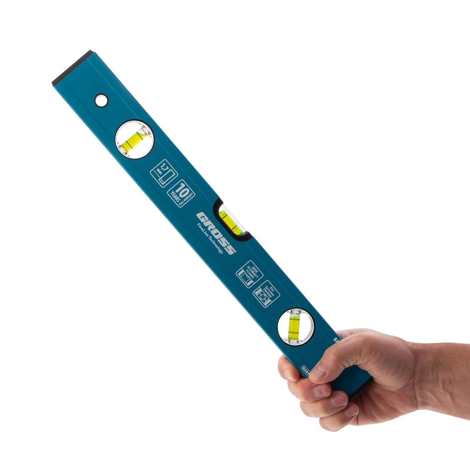 Усиленный алюминиевый уровень Gross 33624 длиной 400 мм, с 3 глазками, поможет найти отклонения от горизонтали и вертикали для повышения точности работы. Этот простой, но незаменимый для любого мастера инструмент пригодится на стройке, при проведении ремонтных и монтажных работ. Уровень с глазком на 45° позволяет измерить угол наклона, поэтому также пригодится при кровельных работах, проверке откосов и различных наклонных поверхностей.