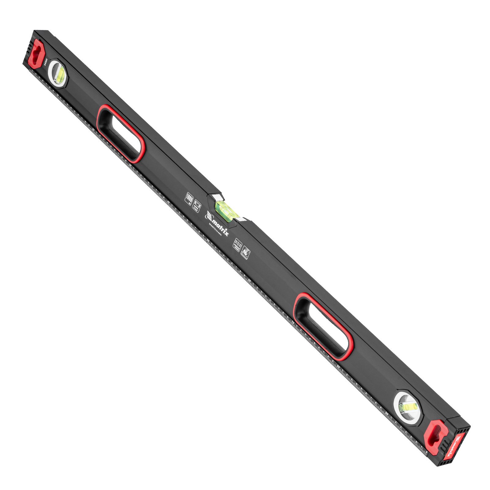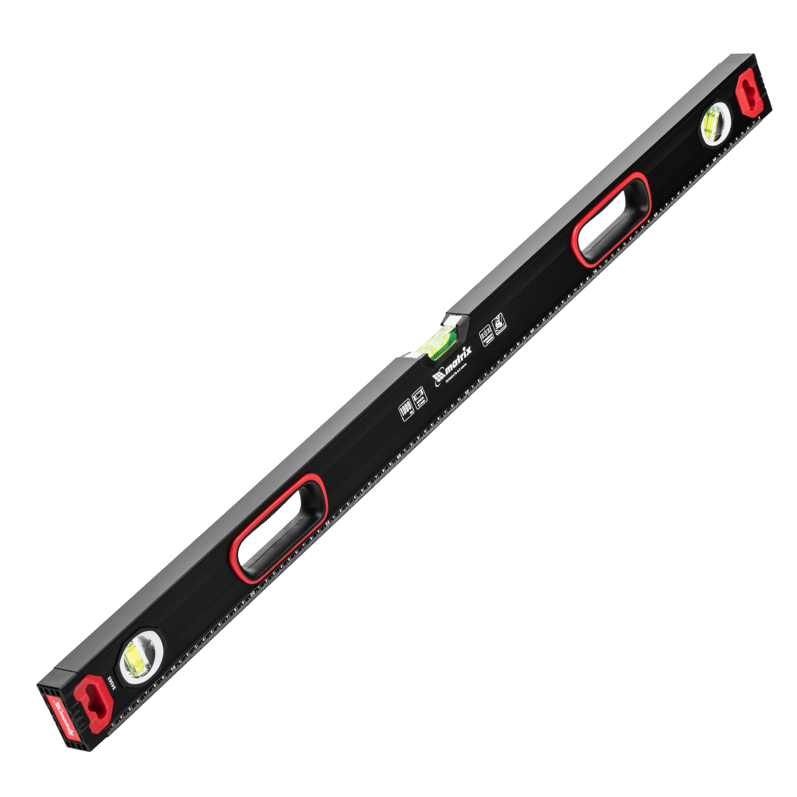 Уровень алюминиевый усиленный Matrix 34363 длиной 1000 мм, фрезерованный, с 3 глазками и двухкомпонентными рукоятками, служит для проверки горизонтальных, вертикальных поверхностей, а также точности угла 45°. Пригодится частному мастеру и профессионалу для проведения строительных, ремонтных и монтажных работ.