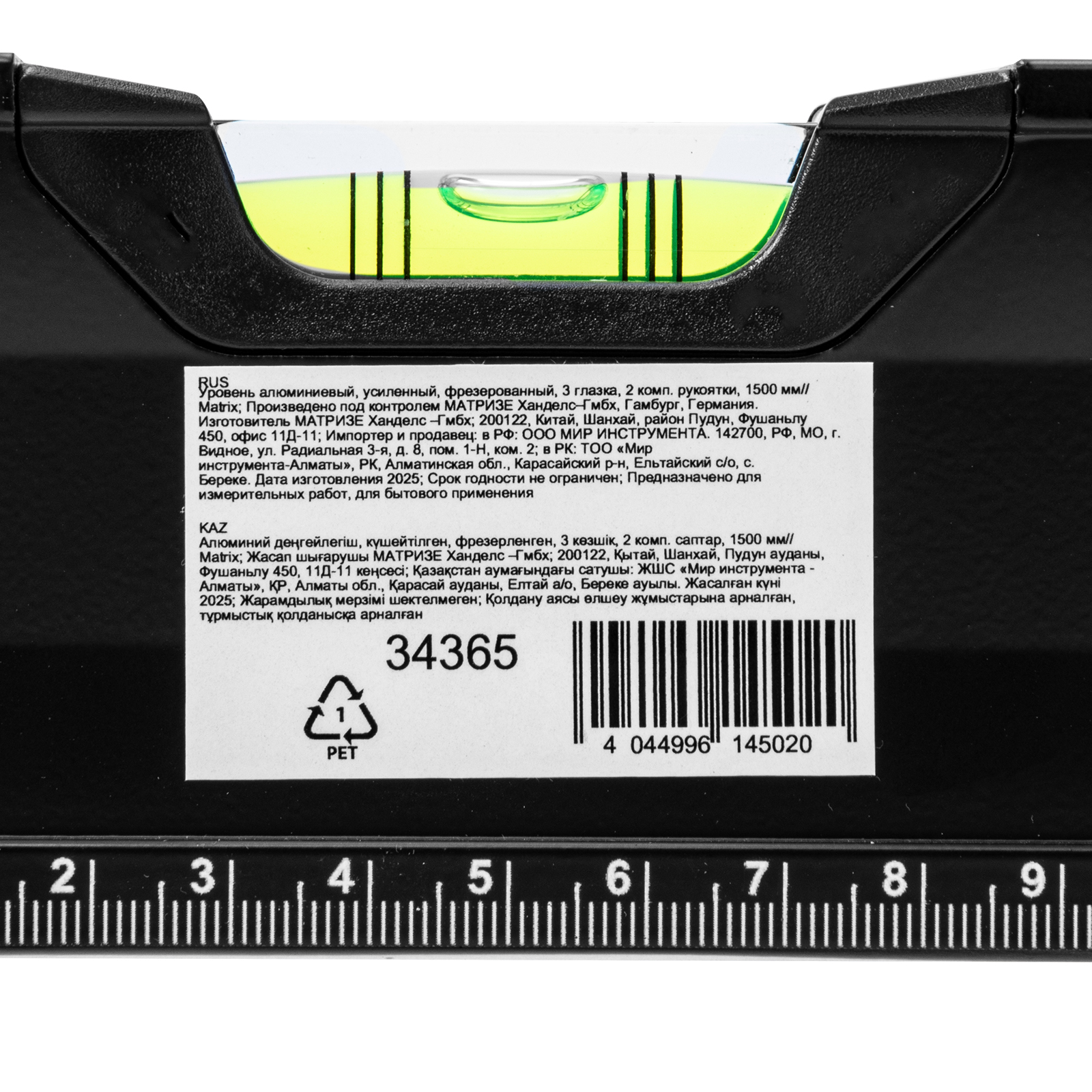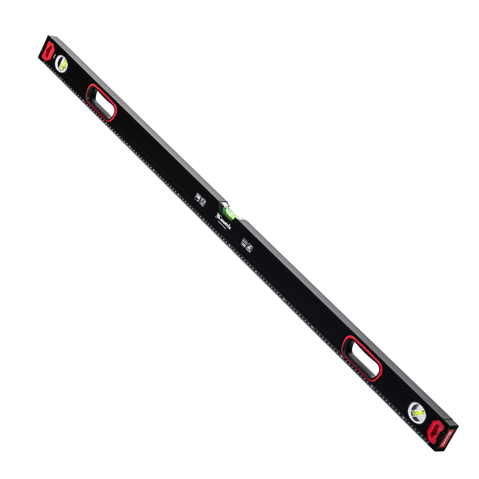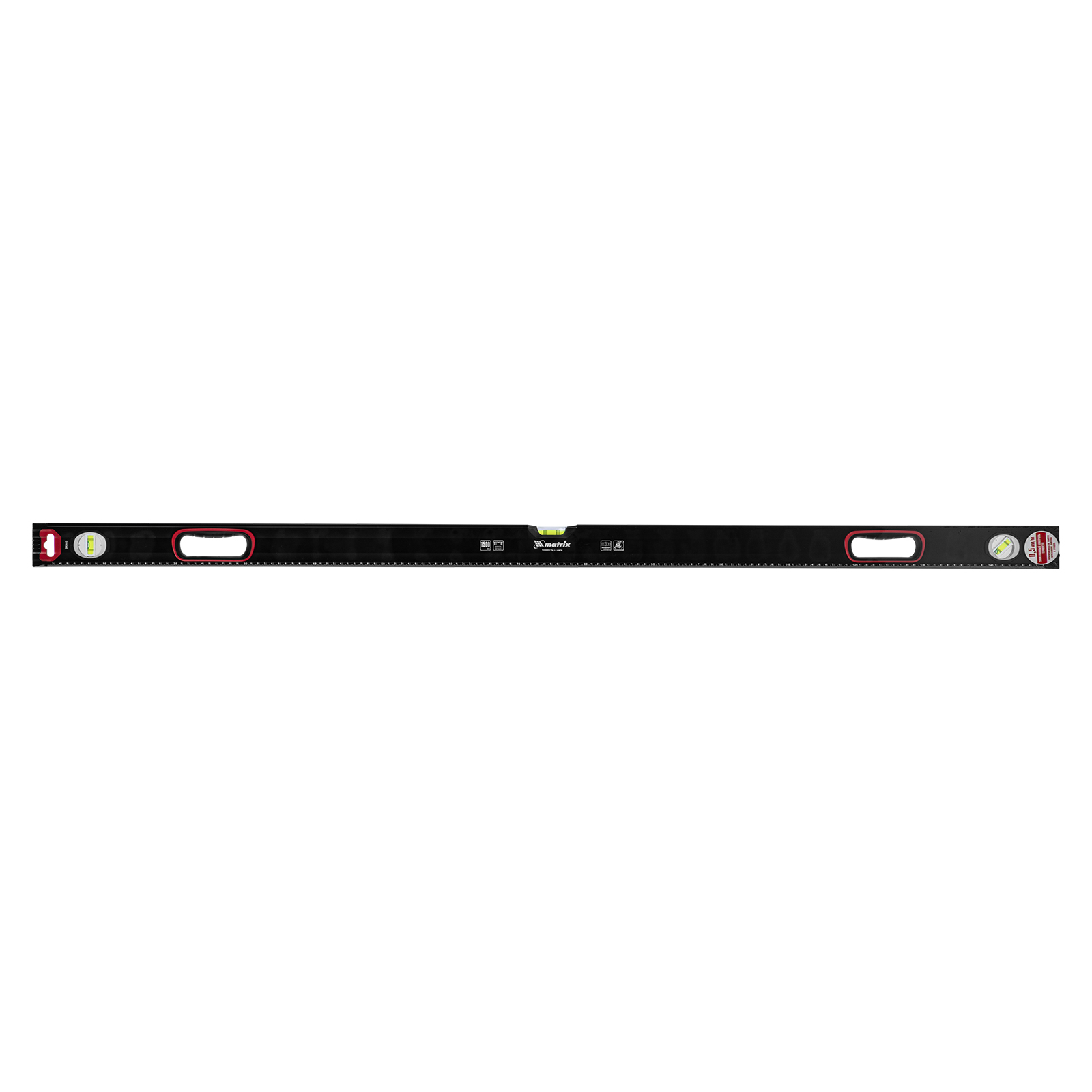 Уровень алюминиевый усиленный Matrix 34365 длиной 1500 мм, фрезерованный, с 3 глазками и двухкомпонентными рукоятками, служит для проверки горизонтальных, вертикальных поверхностей, а также точности угла 45°. Пригодится частному мастеру и профессионалу для проведения строительных, ремонтных и монтажных работ.