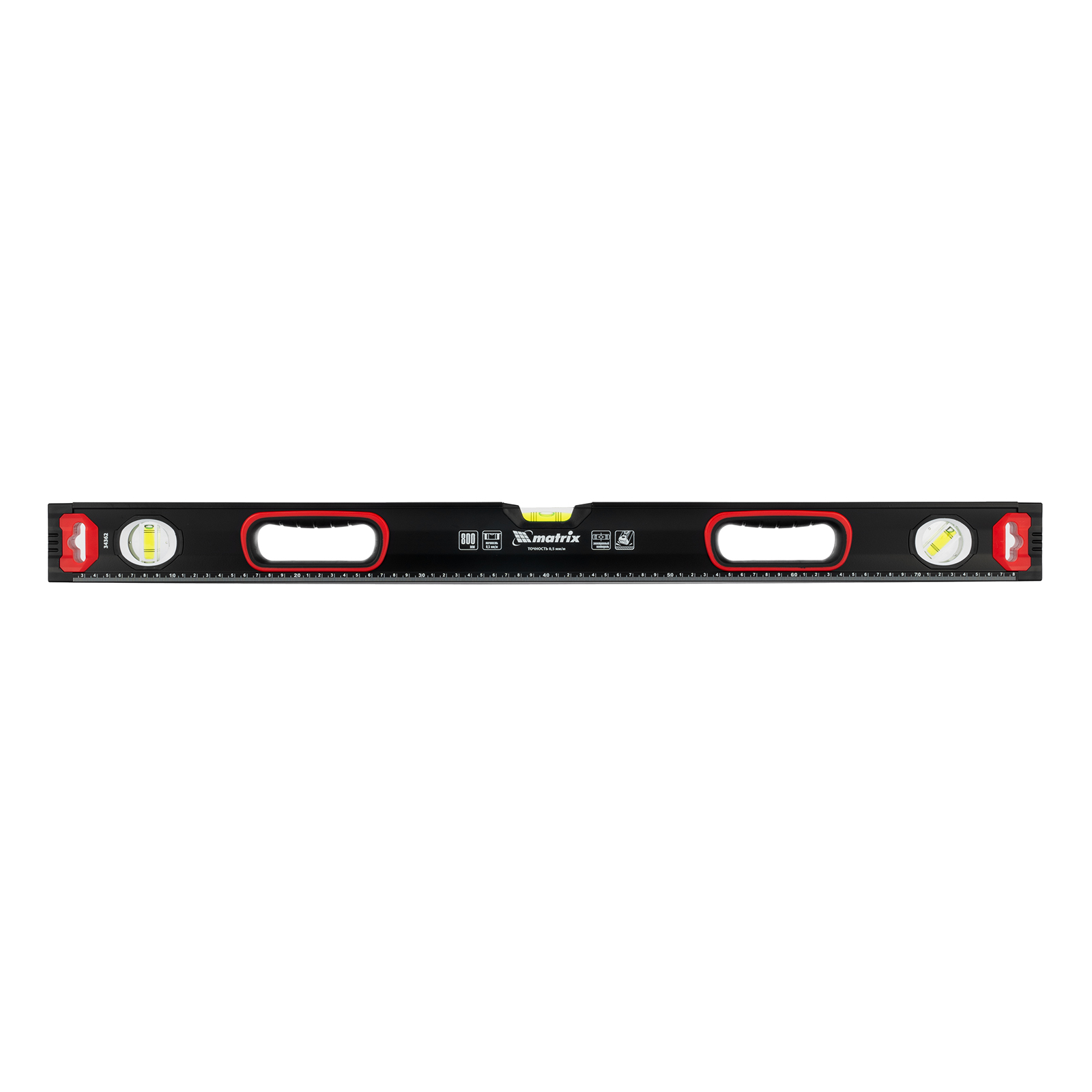Уровень алюминиевый усиленный Matrix 34362 длиной 800 мм, фрезерованный, с 3 глазками и двухкомпонентными рукоятками, служит для проверки горизонтальных, вертикальных поверхностей, а также точности угла 45°. Пригодится частному мастеру и профессионалу для проведения строительных, ремонтных и монтажных работ.