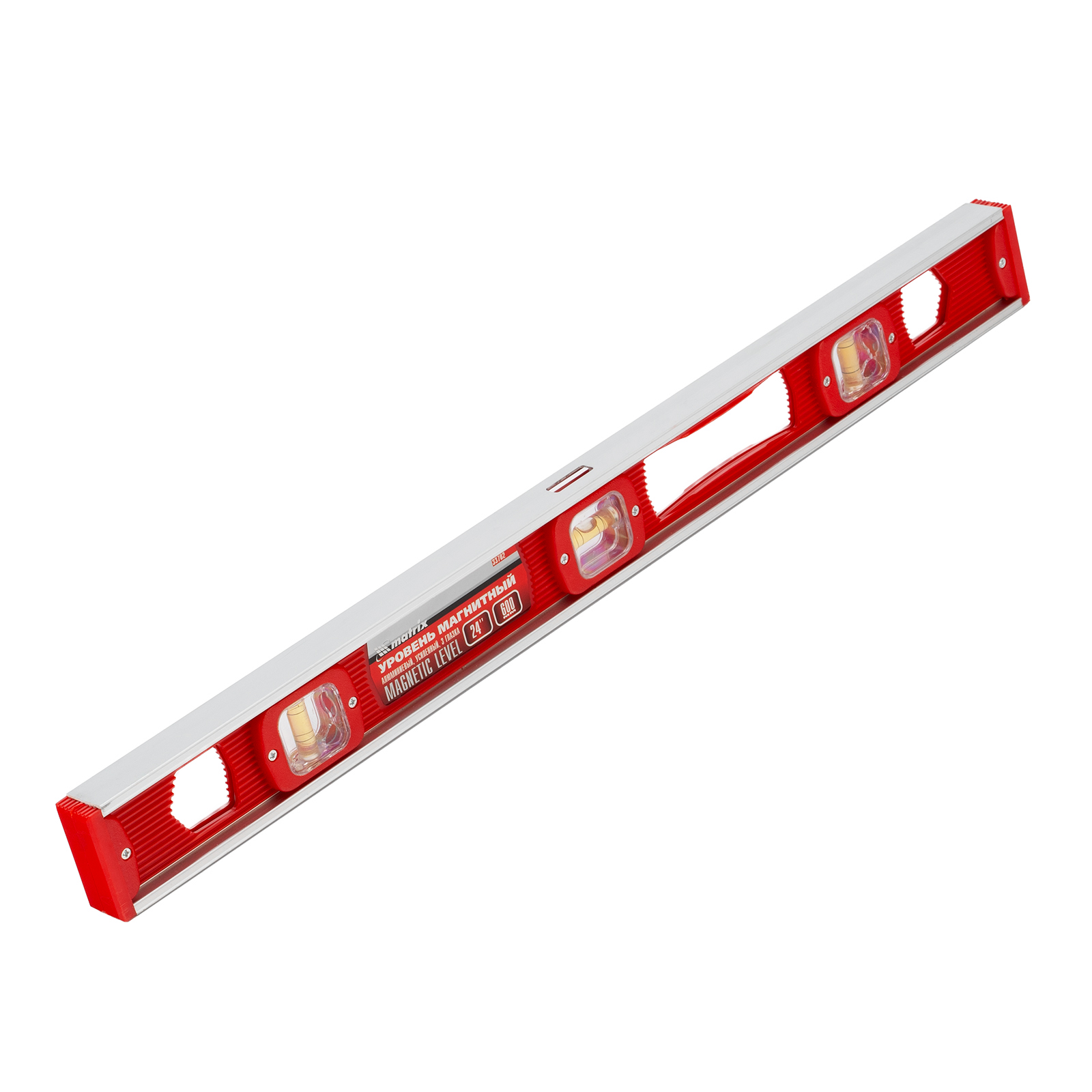 Магнитный уровень Matrix 33702 длиной 600 мм, с 3 глазками, — измерительный инструмент для проверки горизонтальных и вертикальных поверхностей. Пригодится на строительной площадке или в быту для выравнивания поверхностей, при монтаже конструкций, отделке помещений и выполнении других операций. Погрешность не превышает 1 мм на каждый метр (0,057°).