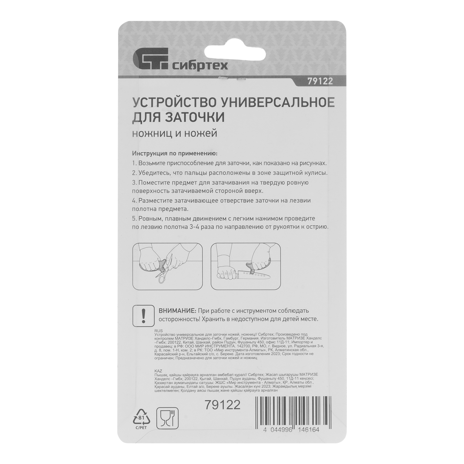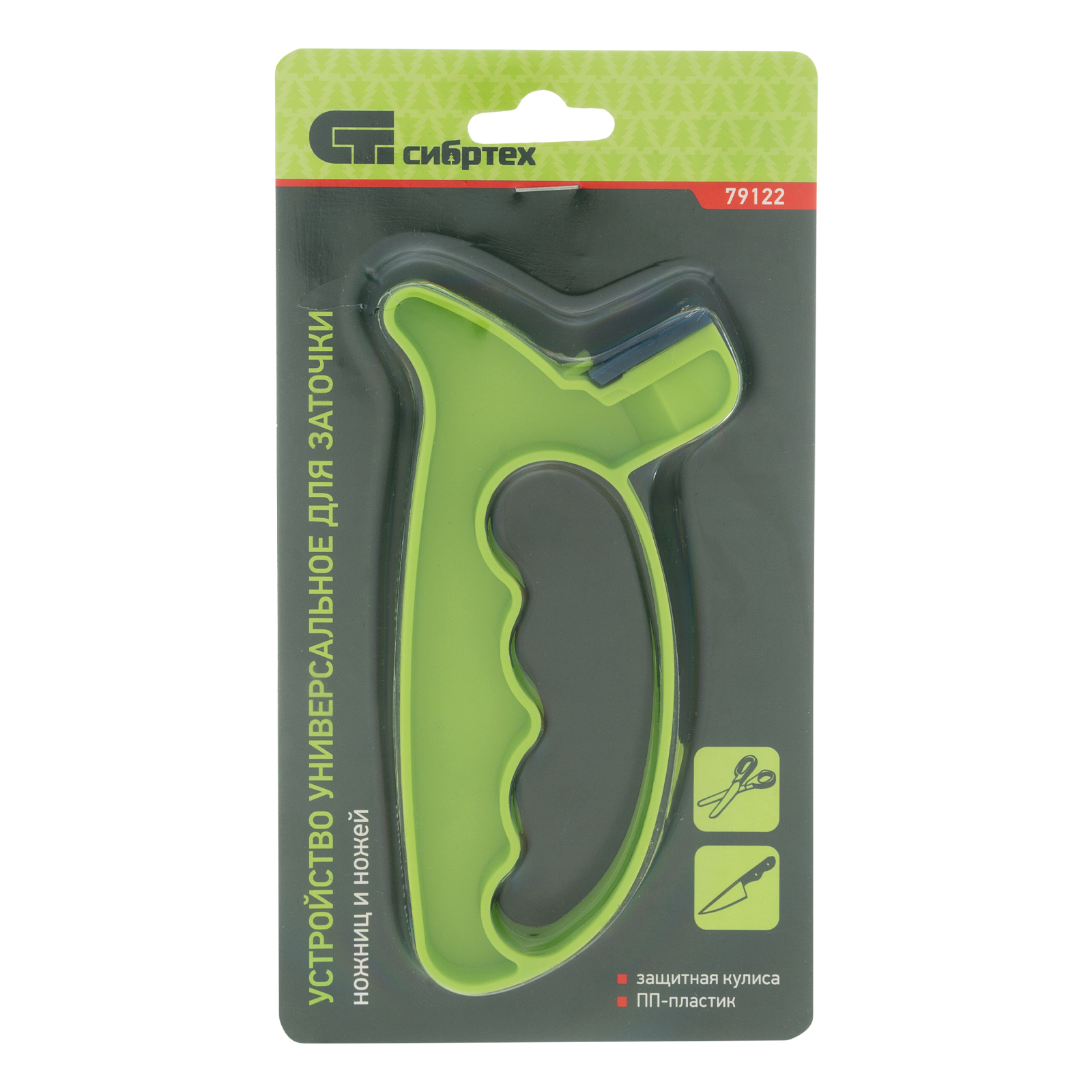 Универсальное устройство для заточки Сибртех 79122 используется для восстановления работоспособности ножей и ножниц. Для каждого вида инструмента предусмотрен отдельный отсек с абразивными элементами. Приспособление будет полезно в быту.