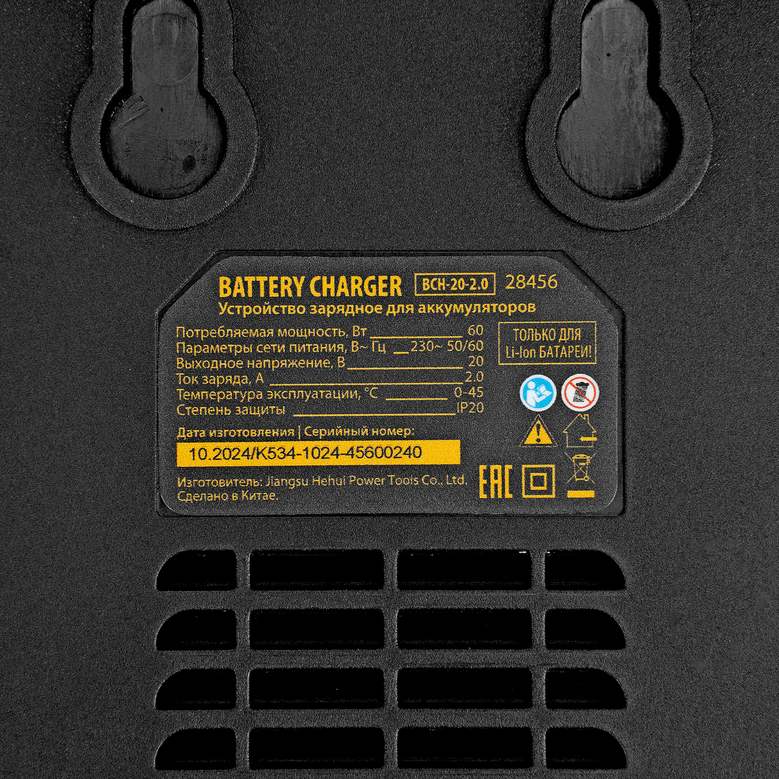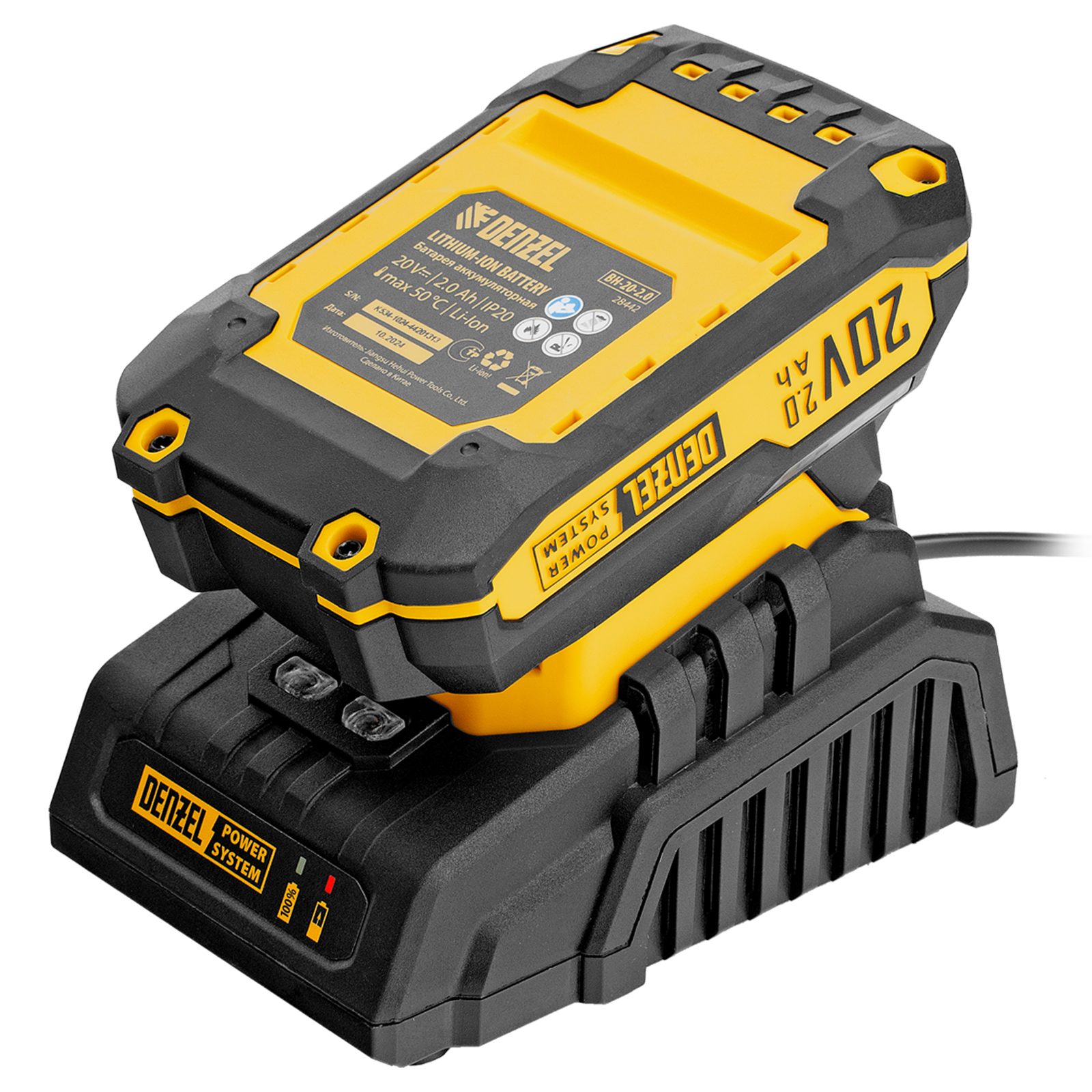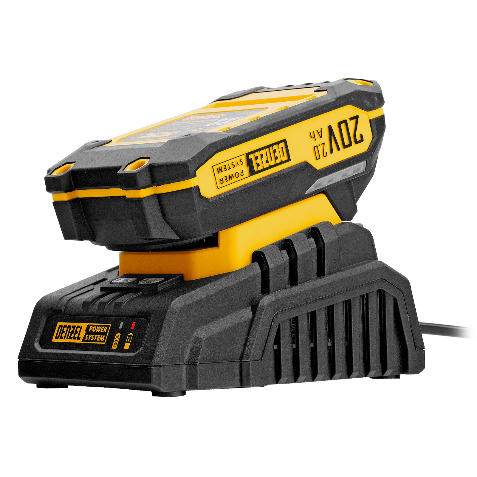 Зарядное устройство Denzel BCH-20-2.0 28456 предназначено для восстановления работоспособности Li-Ion аккумуляторов единой платформы Denzel Power System 20 V (артикулы 28442, 28444 и 28446). Поддерживает ток заряда 2,0 A. Обеспечивает быструю и полную зарядку, что позволяет избежать длительных перерывов в работе с аккумуляторным инструментом.