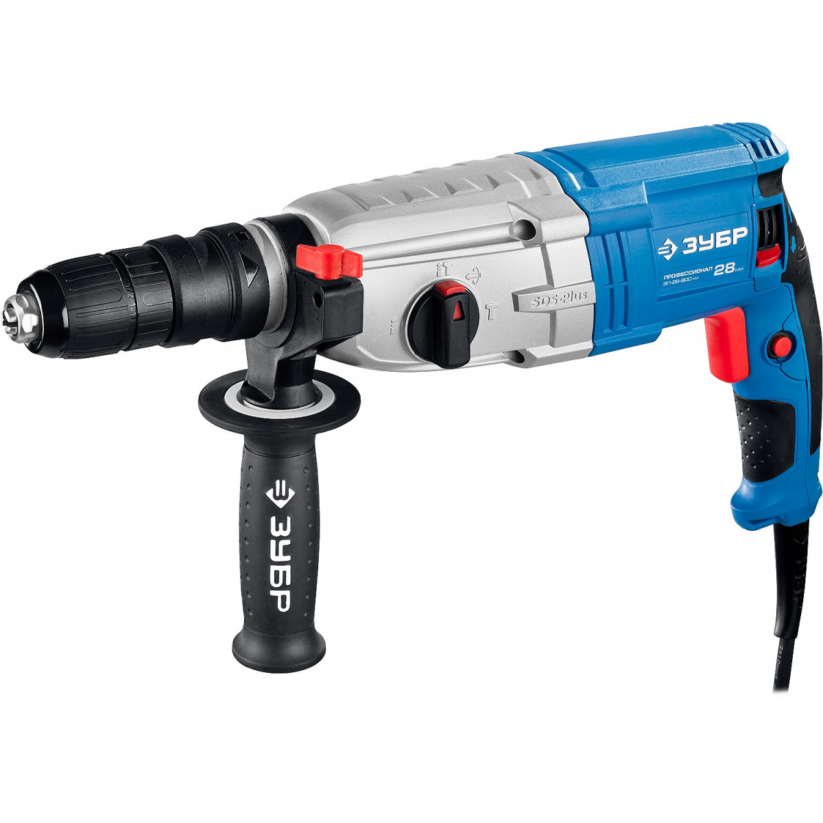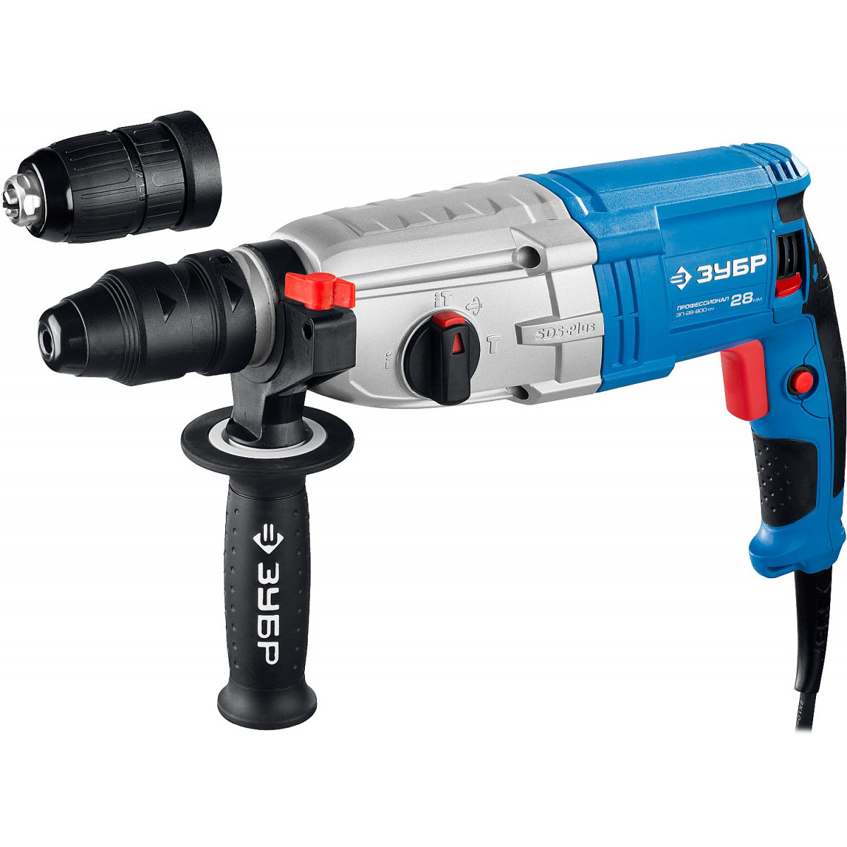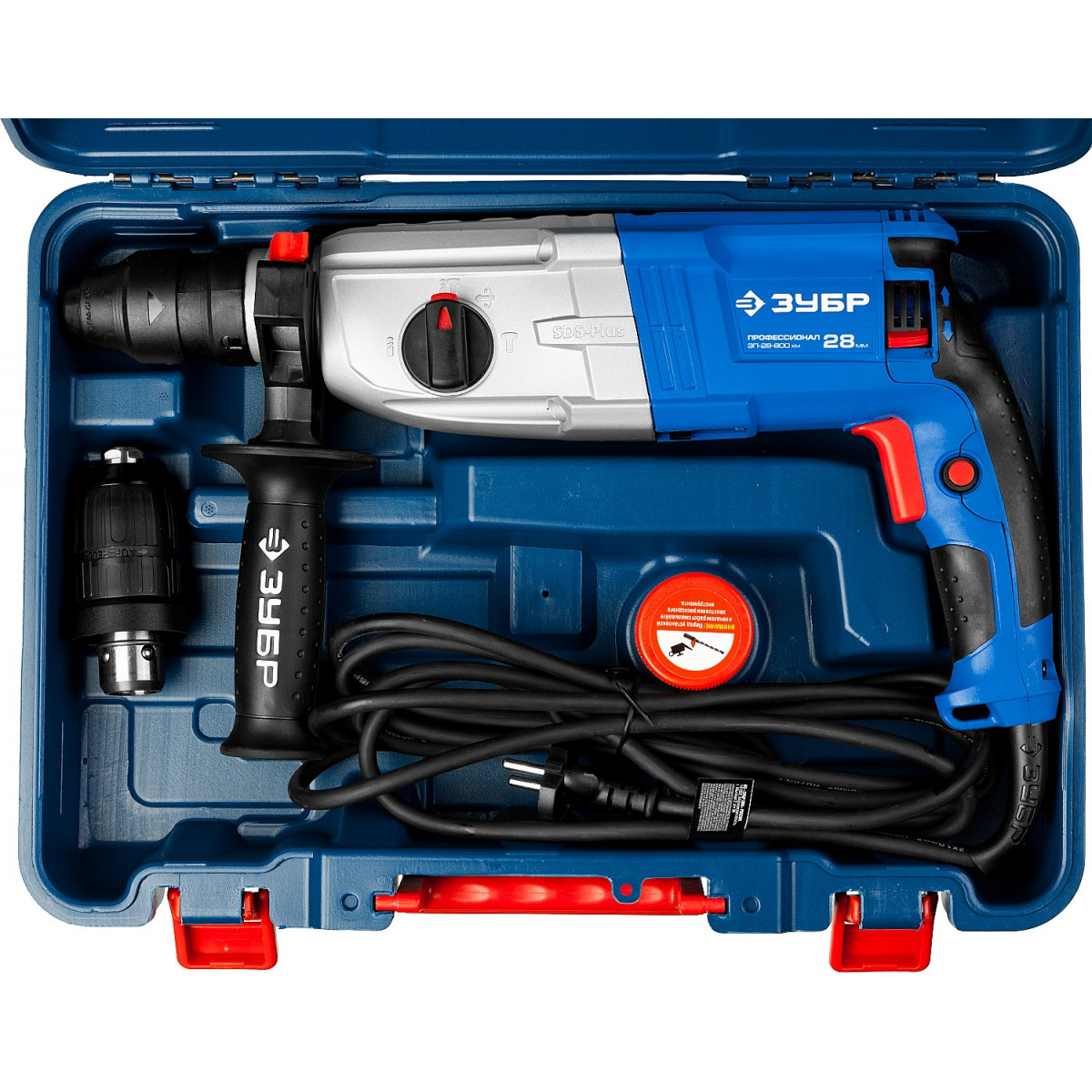 - Два патрона в комплекте - SDS Plus и быстрозажимной патрон для цилиндрических сверл