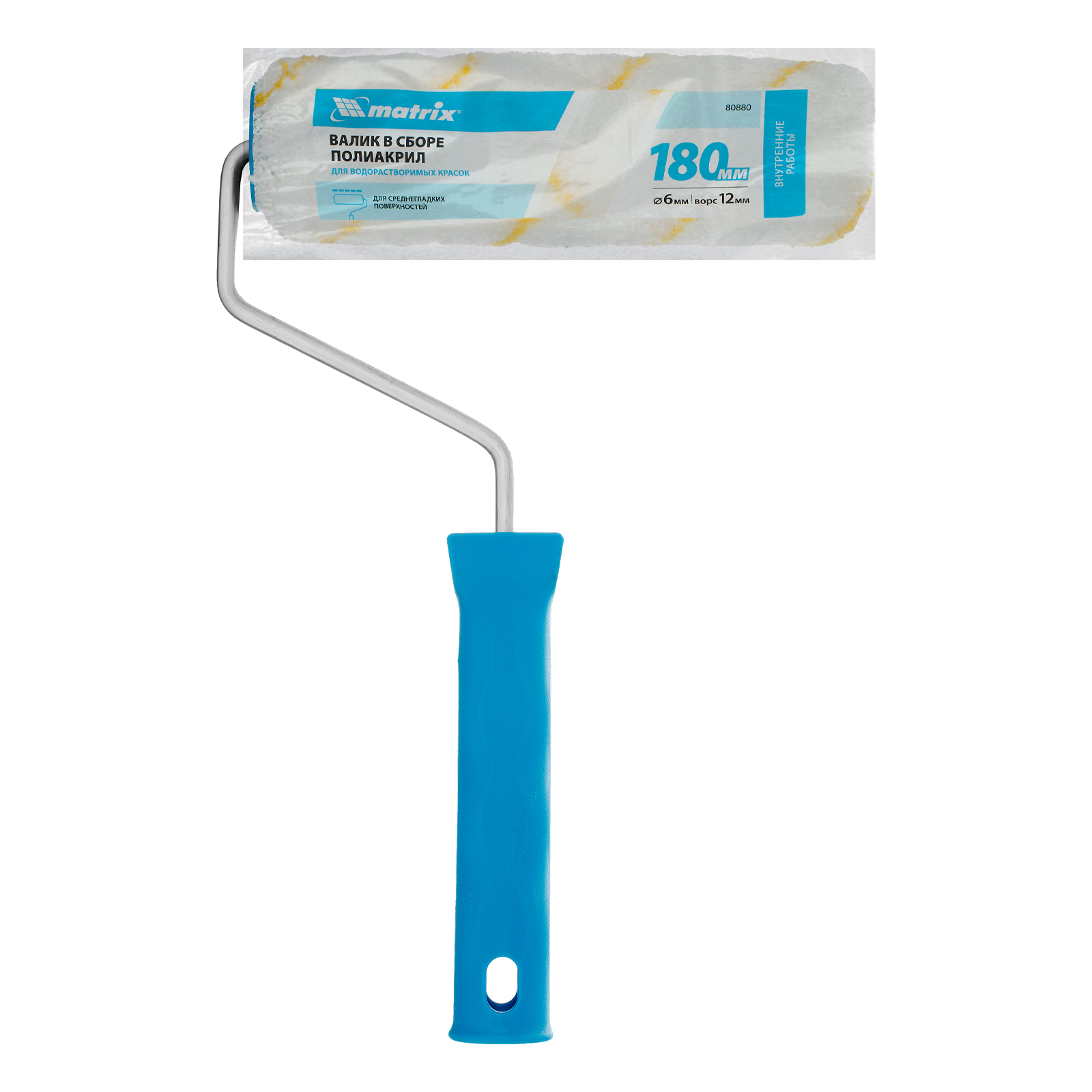 Синтетический валик для внутренних работ Matrix 80880 с бюгелем 6 мм, ворсом 12 мм из полиакрила, шириной 180 мм и диаметром 36 мм, предназначен для окрашивания деревянных поверхностей, стен и потолков. Полиакриловая шубка устойчива к воздействию растворителей, поэтому валик подходит для работы с лакокрасочными материалами любого типа. Благодаря ворсинкам длиной 12 мм валик эффективно окрашивает поверхности со средне-гладкой фактурой.