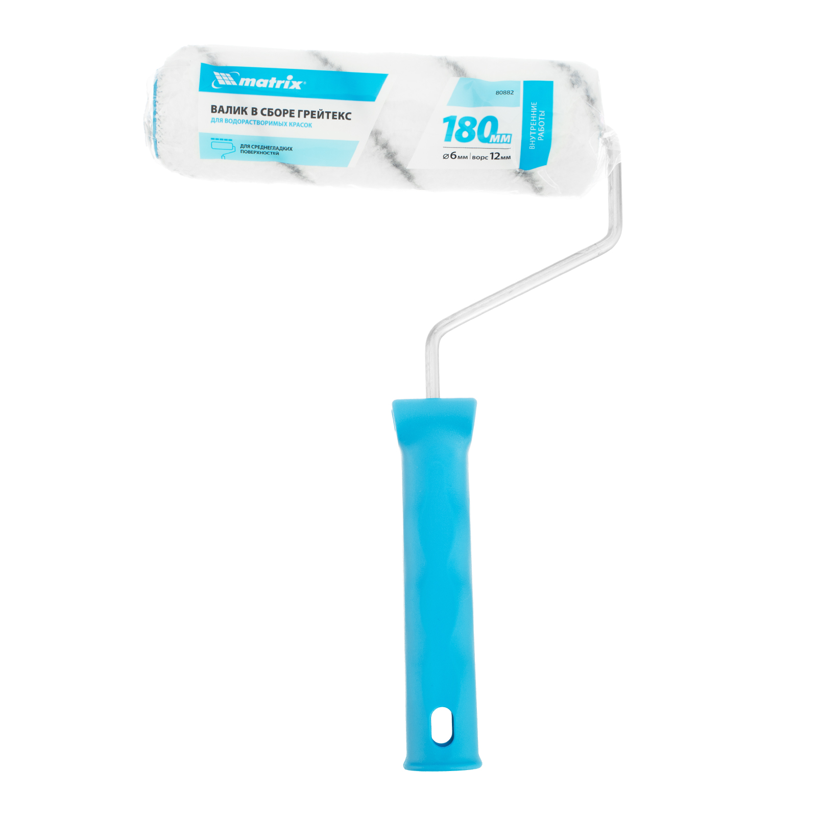 Валик Matrix «ГРЕЙТЕКС» 80882 с ворсом 12 мм из полиакрила, шириной ролика 180 мм и диаметром 36 мм, с ручкой 6 мм, используется для подготовки под покраску поверхностей с гладкой и шероховатой фактурой, а также для окрашивания полов, потолков и стен. Шубка увеличенной плотности из полиакрила устойчива к воздействию растворителей, поэтому подходит для красок любого типа.