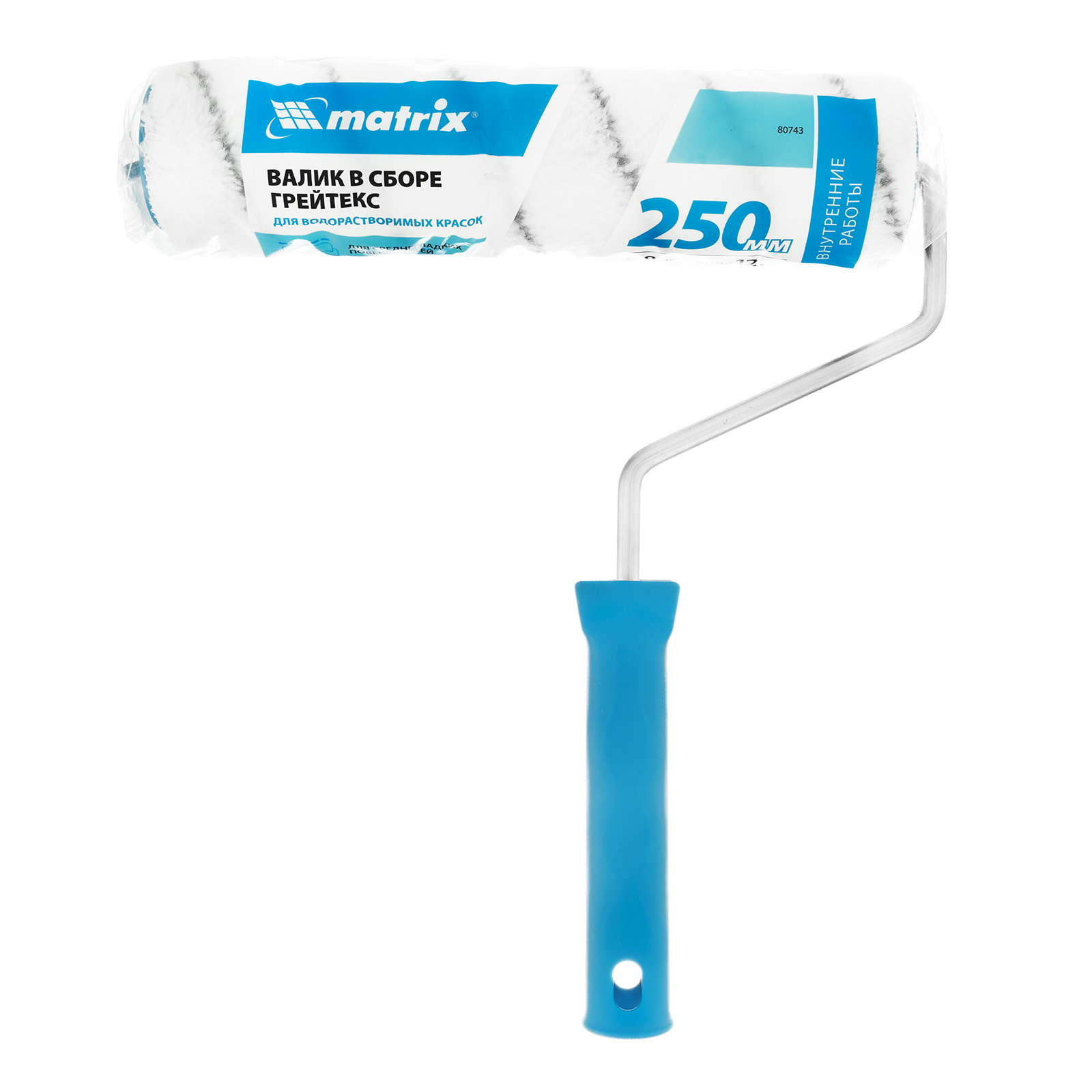 Валик Matrix «ГРЕЙТЕКС» 80743 шириной 250 мм, с ворсом из полиакрила 12 мм, диаметром ролика 48 мм и бюгелем 8 мм, используется во время проведения внутренних и наружных отделочных работ. Применяется для нанесения на гладкие и шероховатые поверхности лаков, красок, эмалей, а также иных лакокрасочных материалов (ЛКМ).