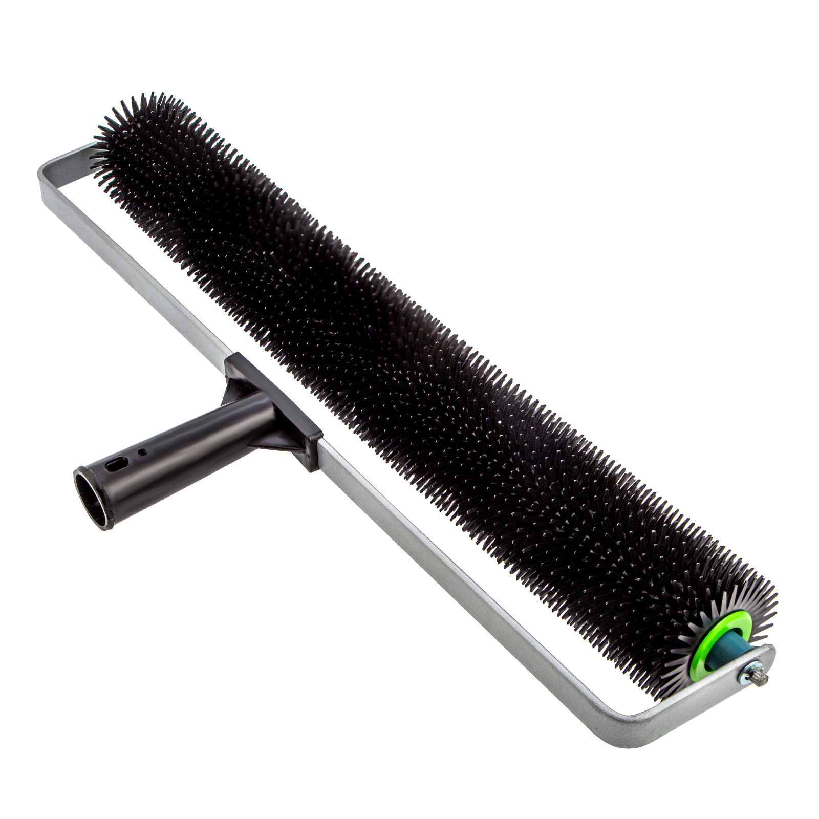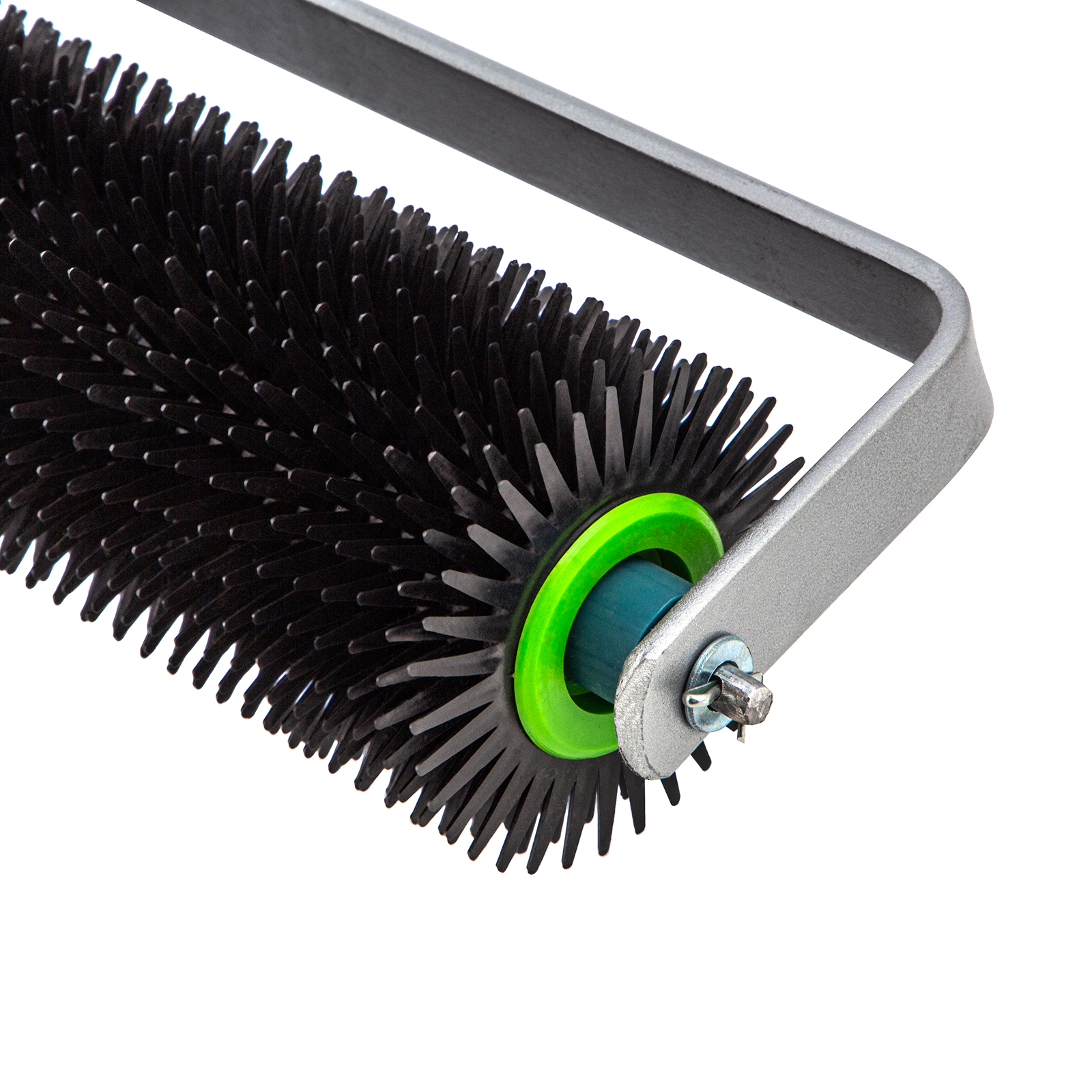 Валик игольчатый Сибртех 81110 с ручкой, длина 240 мм, применяется при монтаже наливных полов, а также при работе с другими вязкими материалами для удаления воздушных пузырей и полостей между рабочими слоями. Благодаря ширине 500 мм валик можно использовать на поверхности большой площади. Иголки длиной 14 мм подходят для покрытий небольшой толщины.