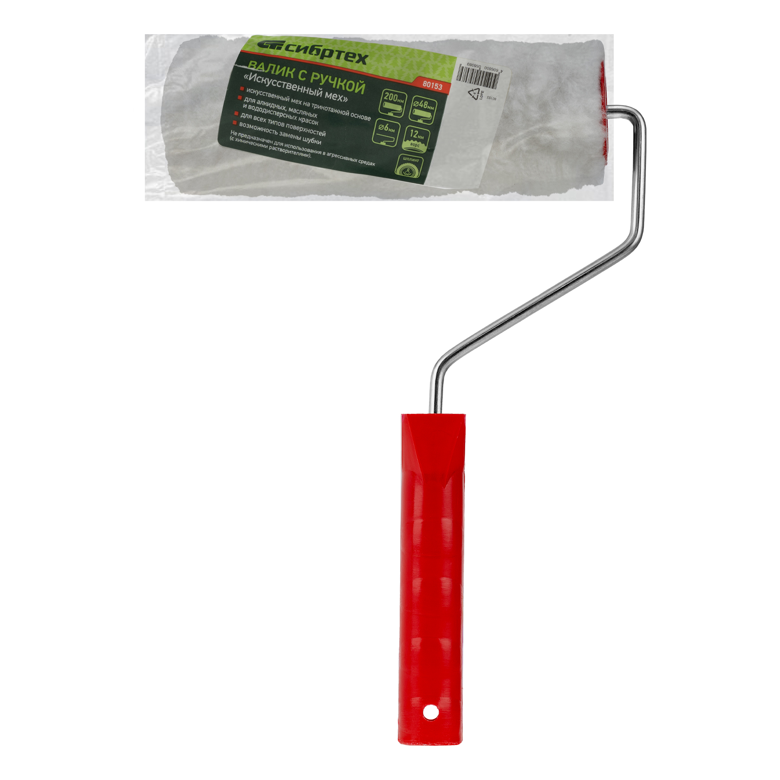 Валик Сибртех «Искусственный мех» 80153 в сборе с ручкой 6 мм, роликом 200 х 48 мм (крепление шплинтом), используется для окрашивания поверхностей любой фактуры на улице или в помещении. С его помощью можно наносить широкий спектр ЛКМ: алкидные, масляные и водно-дисперсионные составы. Валик обеспечивает равномерное распределение и минимальный расход краски.