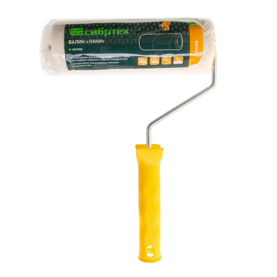 Валик Сибртех «Лаки» 80229 с ворсом длиной 5 мм из велюра, ручкой 6 мм, роликом 180 х 48 мм, обеспечивает нанесение ЛКМ тонким слоем, что делает его лучшим помощником для работ с лаками на гладких поверхностях. Валик шириной 180 мм быстро справляется с окрашиванием участков большой площади.