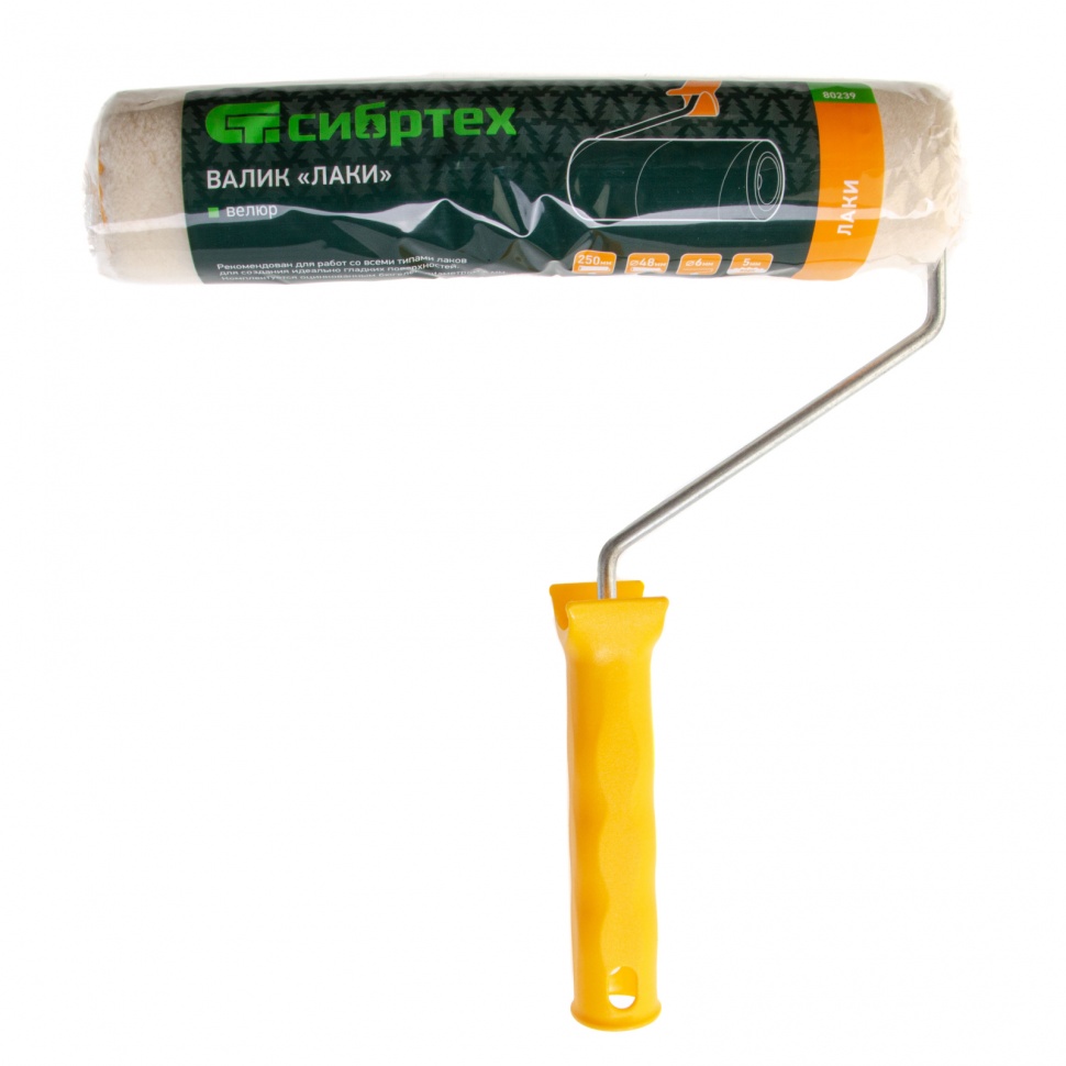 Валик Сибртех «Лаки» 80239 с ворсом длиной 5 мм из велюра, ручкой 6 мм, роликом 250 х 48 мм, обеспечивает нанесение ЛКМ тонким слоем, что делает его лучшим помощником для работ с лаками на гладких поверхностях. Валик шириной 250 мм быстро справляется с окрашиванием участков большой площади.