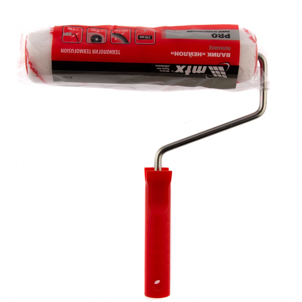 Валик из полиамида MTX «НЕЙЛОН» PRO 81359 шириной 250 мм, с ручкой диаметром 8 мм, ворсом длиной 9 мм и диаметром ролика 48 мм, позволяет проводить малярные работы как в помещении, так и под открытым небом. Полиамидная шубка подходит для работы с любыми лакокрасочными материалами, а за счет ворса 9 мм валик качественно прокрашивает гладкие и средне-шероховатые поверхности.