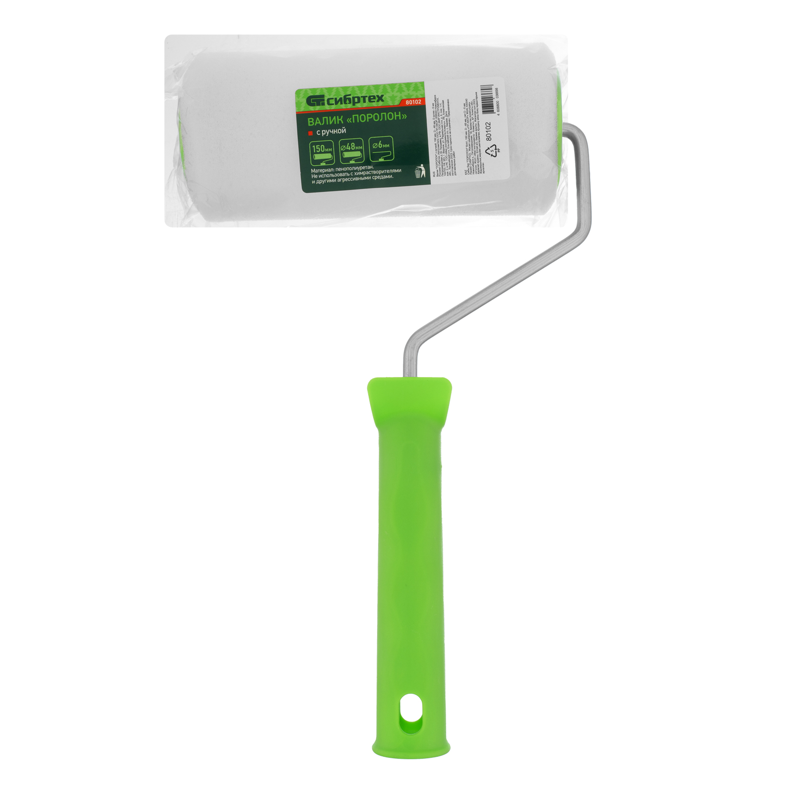 Валик Сибртех «ПОРОЛОН» 80102 размером 150 х 48 мм, с ручкой диаметром 6 мм, используется при проведении малярных работ с жидкими водно-дисперсионными ЛКМ: латексными, акриловыми, а также грунтовками и водно-клеевыми составами. Предназначен для окрашивания гладких поверхностей. Поролоновая шубка отличается высокими показателями впитываемости и равномерно наносит лакокрасочные материалы, что повышает продуктивность работы.