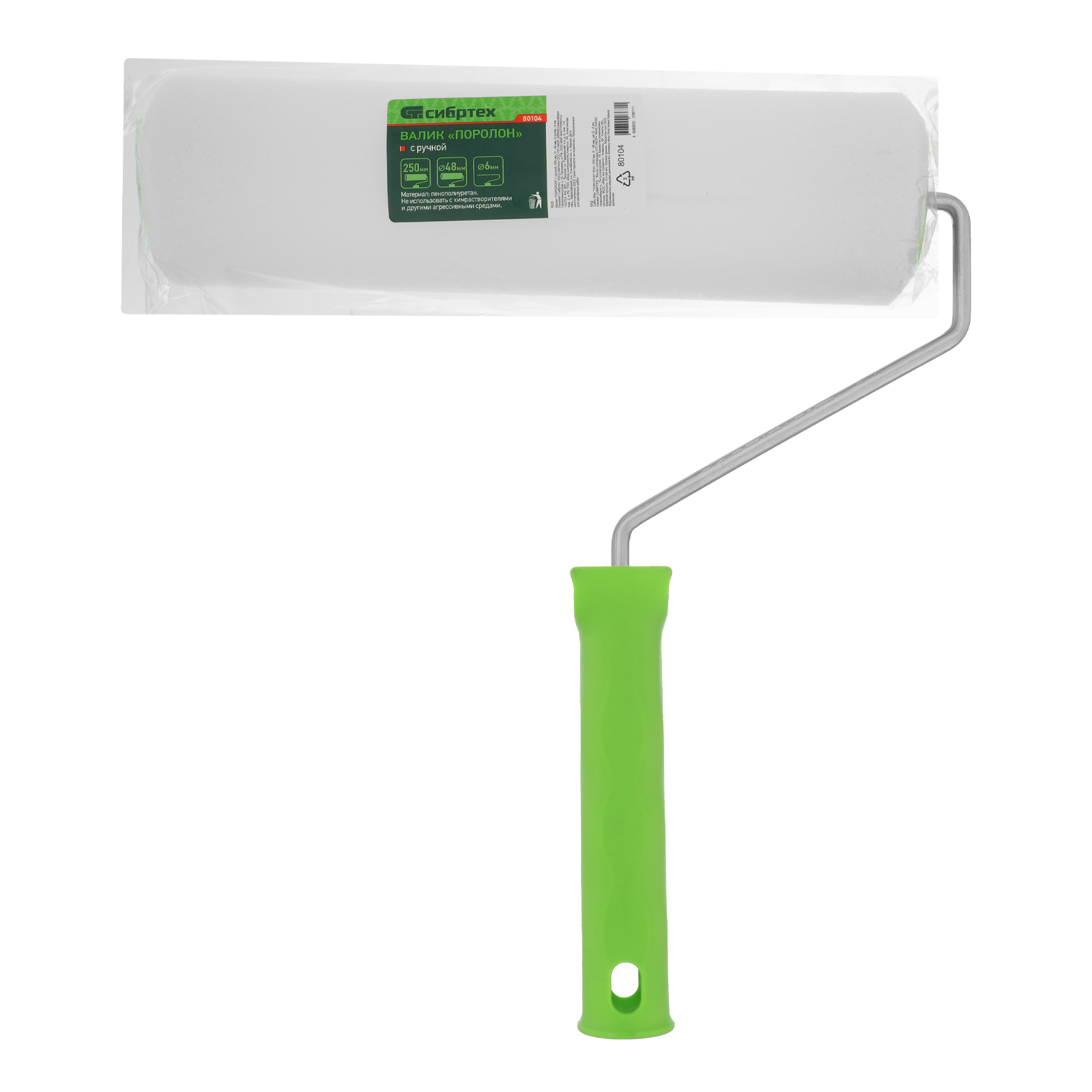 Валик Сибртех «ПОРОЛОН» 80104 размером 250 х 48 мм, с ручкой диаметром 6 мм, используется при проведении малярных работ с жидкими водно-дисперсионными ЛКМ: латексными, акриловыми, а также грунтовками и водно-клеевыми составами. Предназначен для окрашивания гладких поверхностей. Поролоновая шубка отличается высокими показателями впитываемости и равномерно наносит лакокрасочные материалы, что повышает продуктивность работы.