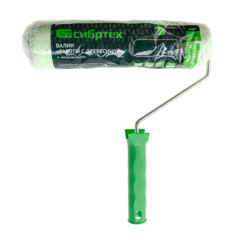 Валик Сибртех «Работы с древесиной» 80247 шириной 250 мм, ворсом 12 мм из микроволокна, диаметром ролика 48 мм и ручкой 6 мм, оптимален для работ с жидкими лакокрасочными материалами: антисептиками, грунтовками, пропитками, защитными составами, лазурью и другими невязкими ЛКМ. Шубка из микроволокна отличается высокой впитывающей способностью и обеспечивает ровное нанесение материалов на древесину любой текстуры.