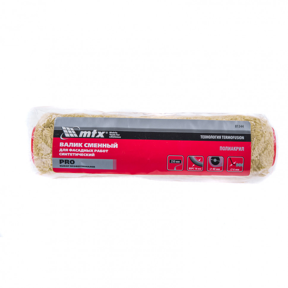 Синтетический сменный валик для фасадных работ MTX PRO 81344 с ворсом из полиакрила 18 мм устанавливается на ручку 6 мм. Благодаря ширине 250 мм и диаметру ролика 40 мм валик удобен при обработке больших площадей, поэтому рекомендуется для отделки внешних стен зданий. Длинный ворс позволяет качественно прокрашивать рельефные участки, в том числе гофрированный металл, грубую древесину, текстурные поверхности.